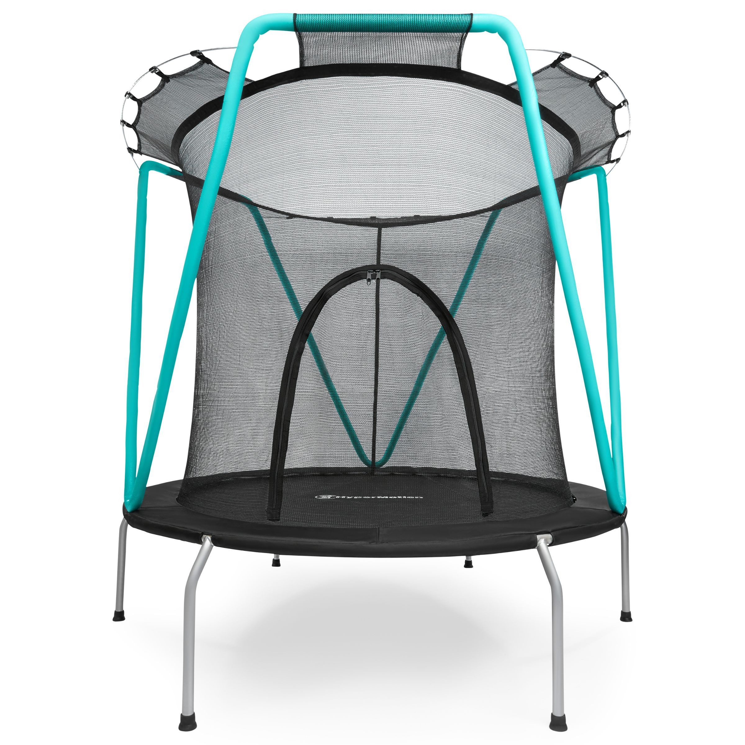 Mit einem Durchmesser von 167 cm und einem robusten Sicherheitsnetz, das eine Höhe von 120 cm über der Matte erreicht, bietet dieses Trampolin maximalen Schutz. Der Zugang erfolgt über einen sicheren, mit Reißverschluss versehenen Eingang.