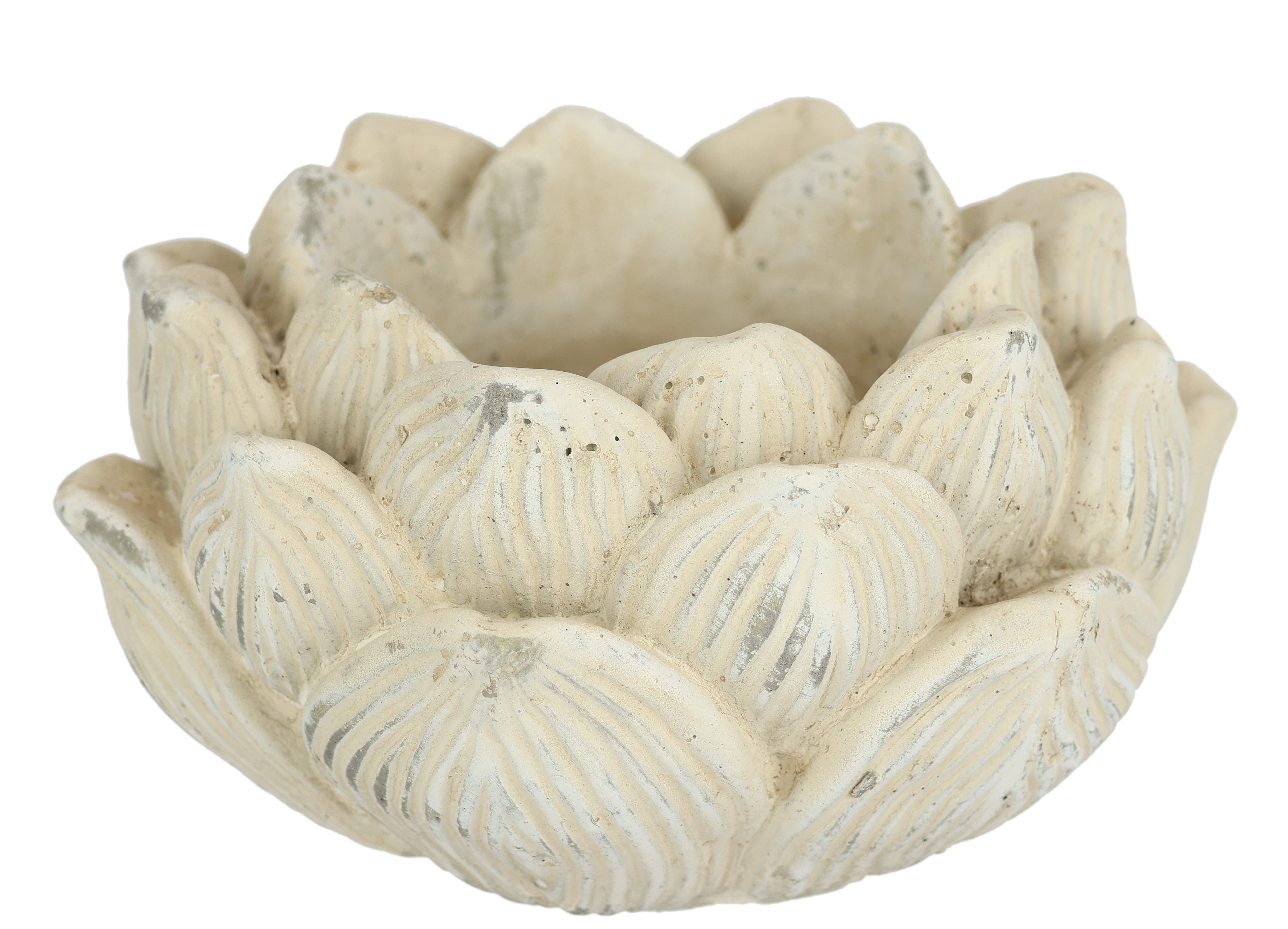 Blumentopf in Form einer Lotusblüte mit antiker, cremefarbener Oberfläche
