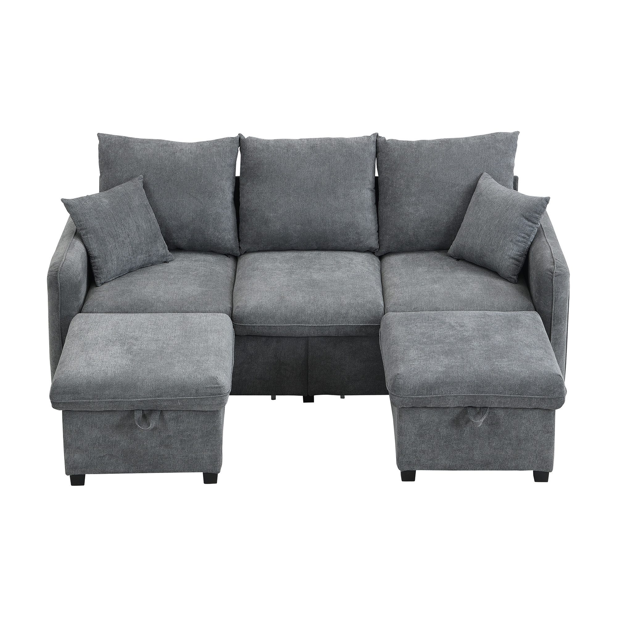 1.Multifunktionale Nutzung: Dreisitzersofa + 2 Staufußhocker frei kombinierbar – verwandelt sich sekundenschnell in eine L-Form-Liege oder Einzelbett, erfüllt vielfältige Bedürfnisse wie Gästeempfang, Entspannung und Schlafen.