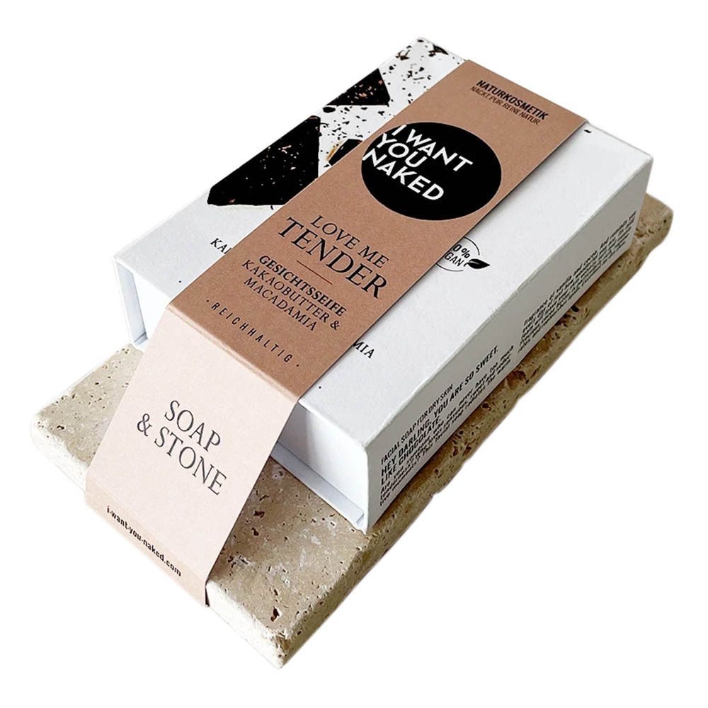 Der perfekte Begleiter für die I WANT YOU NAKED Naturseifen: dieser schlichte, unbehandelte Stein sieht nicht nur wunderschön aus, er verlängert auch die Lebensdauer unserer Seifen und hält sie in Form. Die Gesichtsseife mit Kakaobutter & Macadamia-Öl ist dank feuchtigkeitsspendenden Ölen und Fetten besonders pflegend und für trockene Haut geeignet. Die reichhaltigen Wirkstoffe sind besonders gut rückfettend und machen die Haut samtig zart und geschmeidig.
