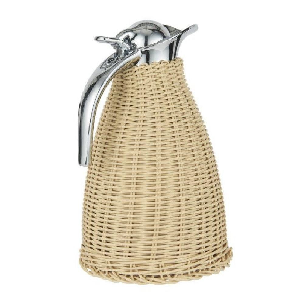 Raffinierte Thermoskanne im Kleid aus Polyrattangeflecht von Ib Laursen, Dänemark.