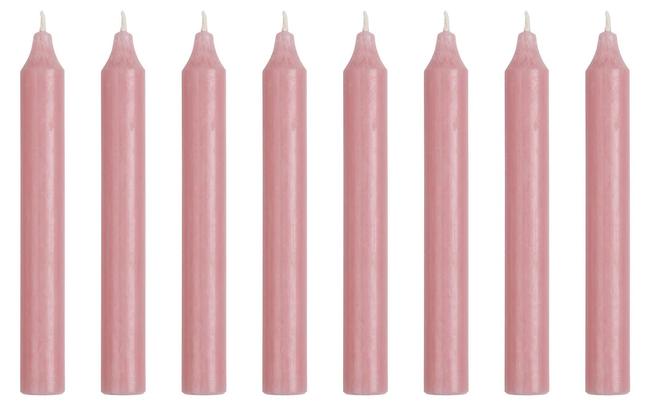 Beliebte Stabkerzen, 8er Set im rustikalen Stil, Farbe ROSE.
