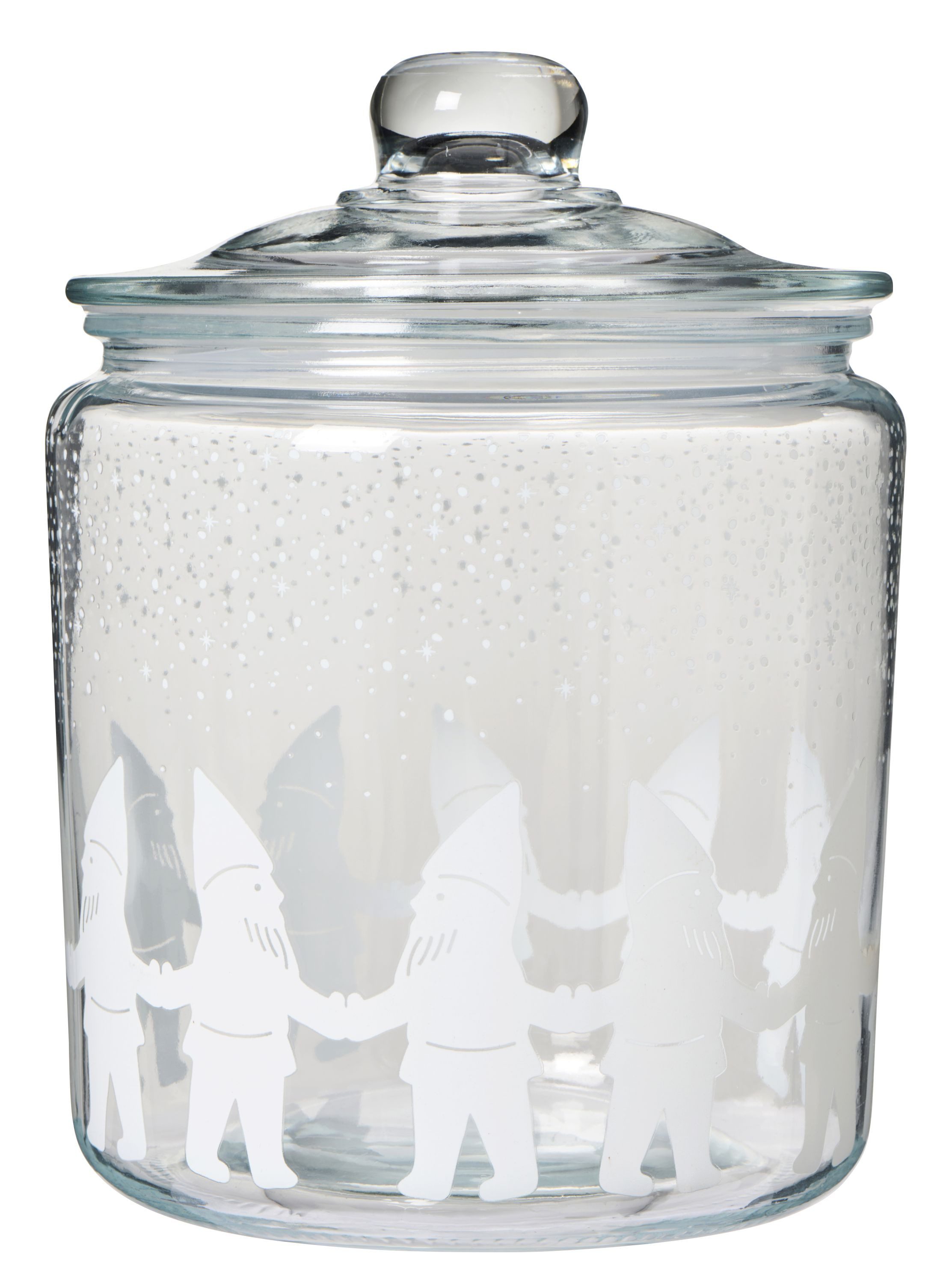 Bewahren Sie Weihnachtsplätzchen oder andere Köstlichkeiten in diesem bezaubernden Glaskrug auf, der mit Wichtelmännchenmuster verziert ist. Das Glas ist mit einem Gummiring im Deckel ausgestattet, um eine luftdichte Versiegelung zu gewährleisten, sodass der Inhalt lange frisch bleibt.