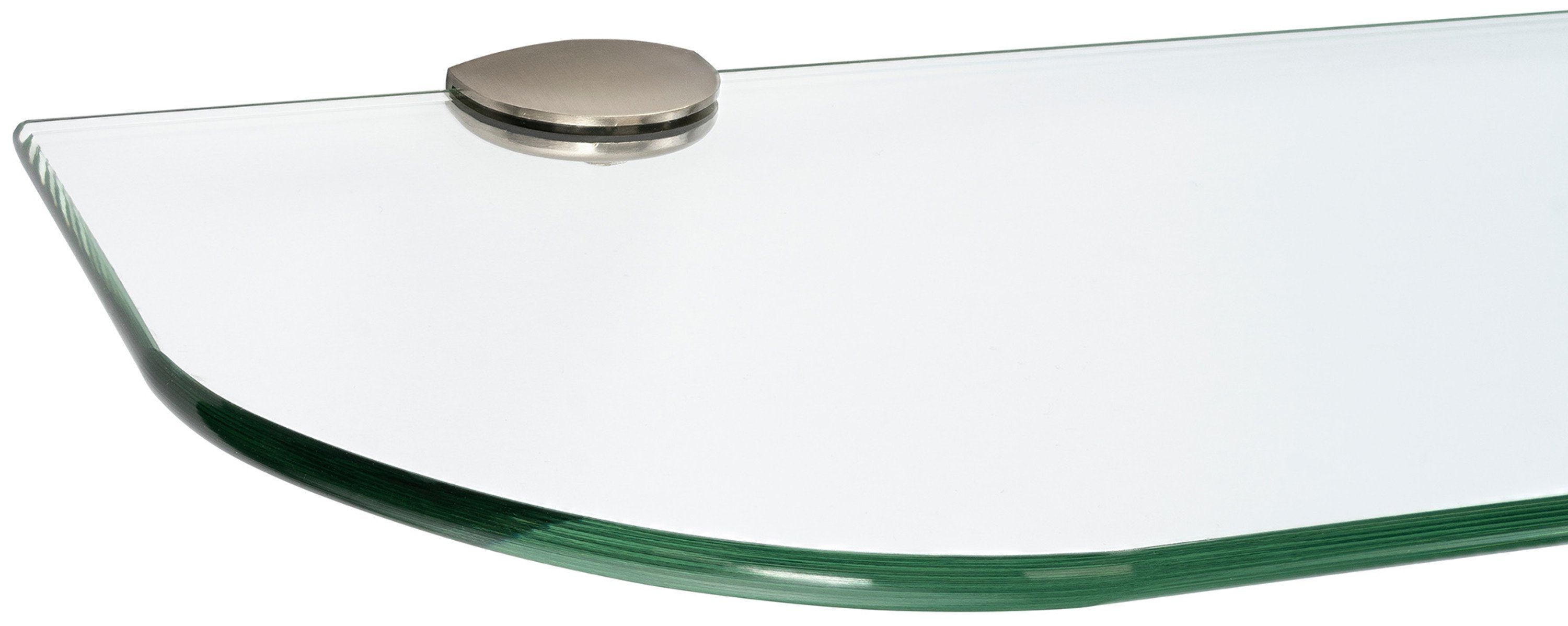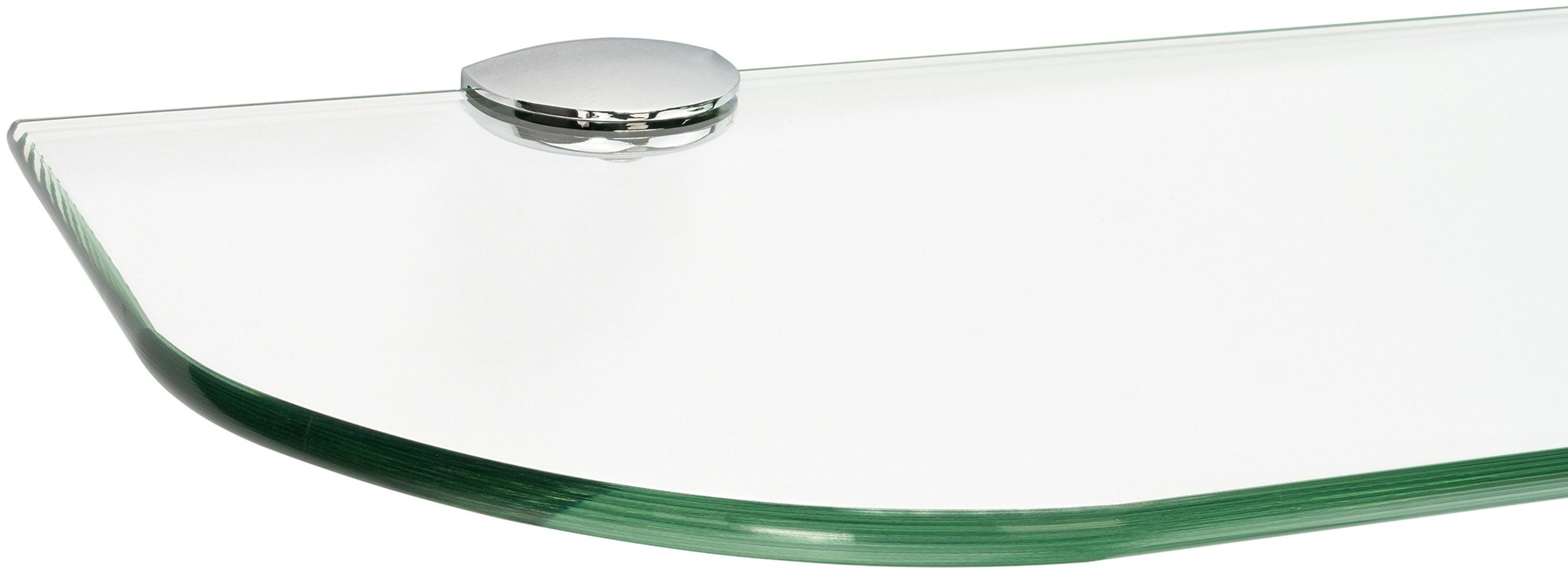 Das formschöne Glasregal eignet sich perfekt als Wandregal für Küche oder Wohnbereich.