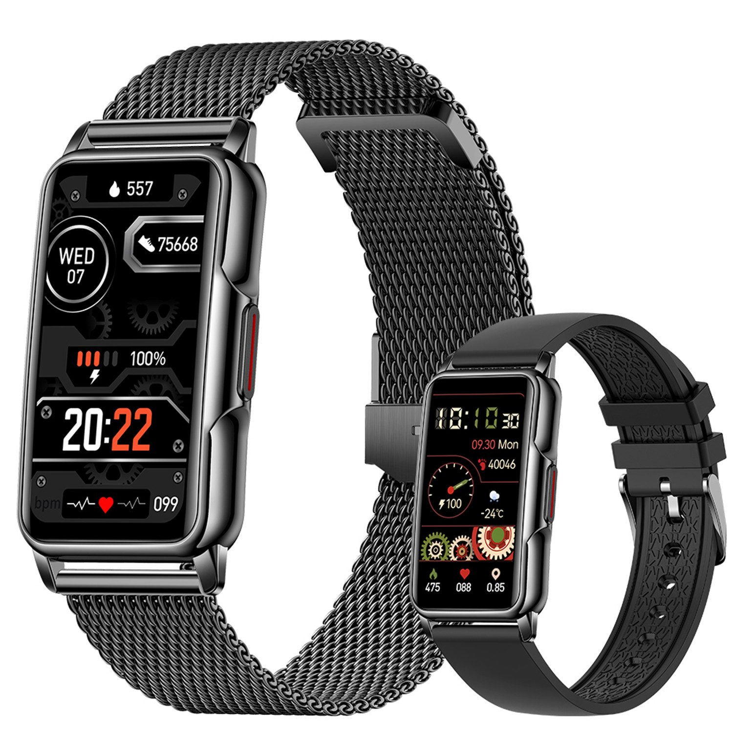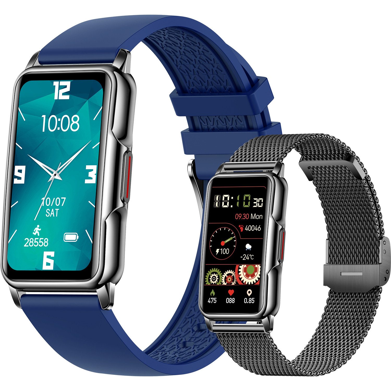 Armbandfarbe | Blau Silikon+Schwarz Milanaise |