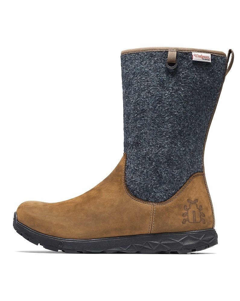 • sein hoher, wasserabweisender Schaft aus gefilzter Wolle besteht aus Schnittresten aus der Kleiderproduktion von Woolpower