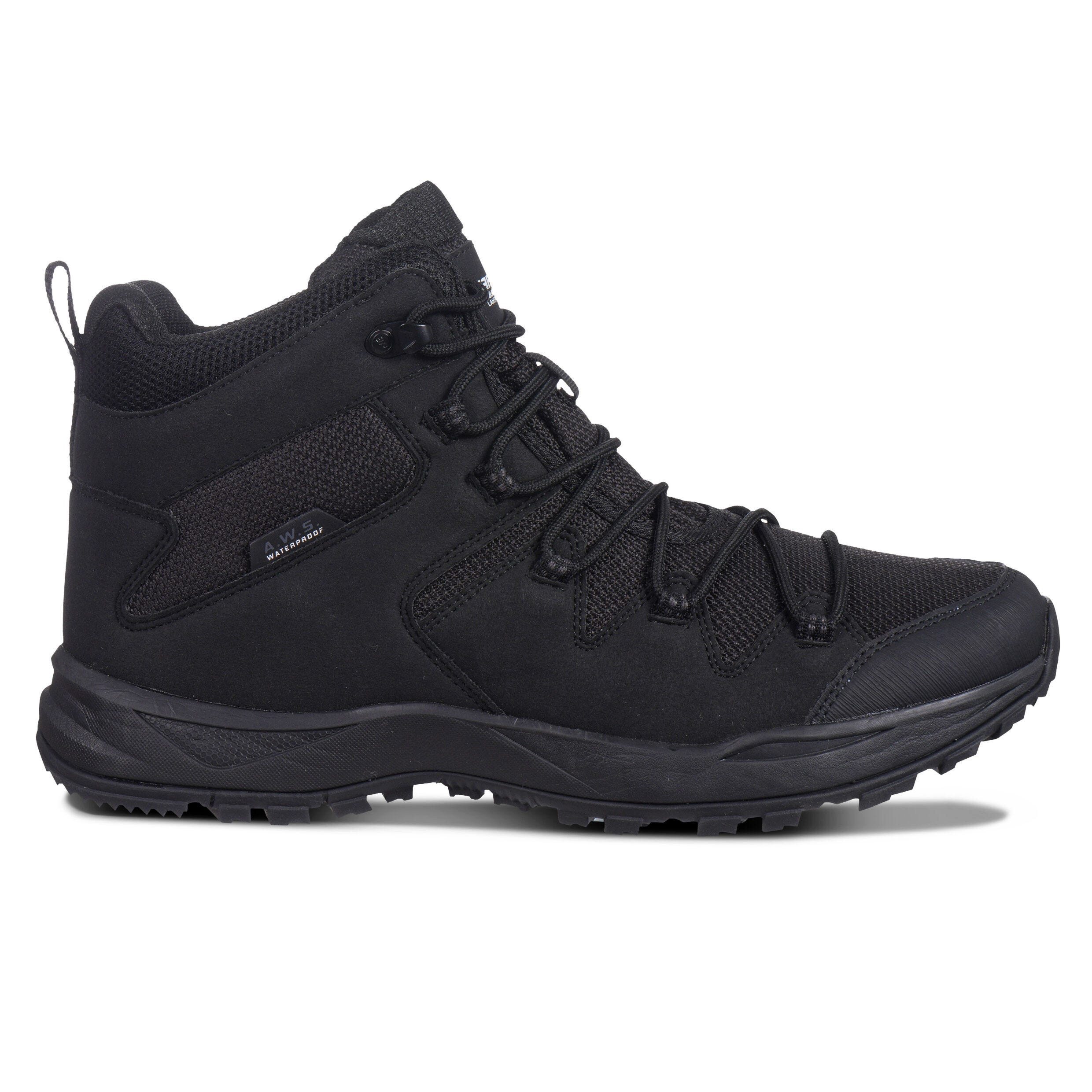 Die A.W.S. WATERPROOF-Membran ist wasserdicht und atmungsaktiv. Sie leitet Feuchtigkeit von der Haut nach außen, ohne dass Wasser in die Schuhe eindringt. Die profilierte Gummi-Sohle der Wanderschuhe sorgt für einen sicheren Tritt — auch auf nassem und unebenem Untergrund.