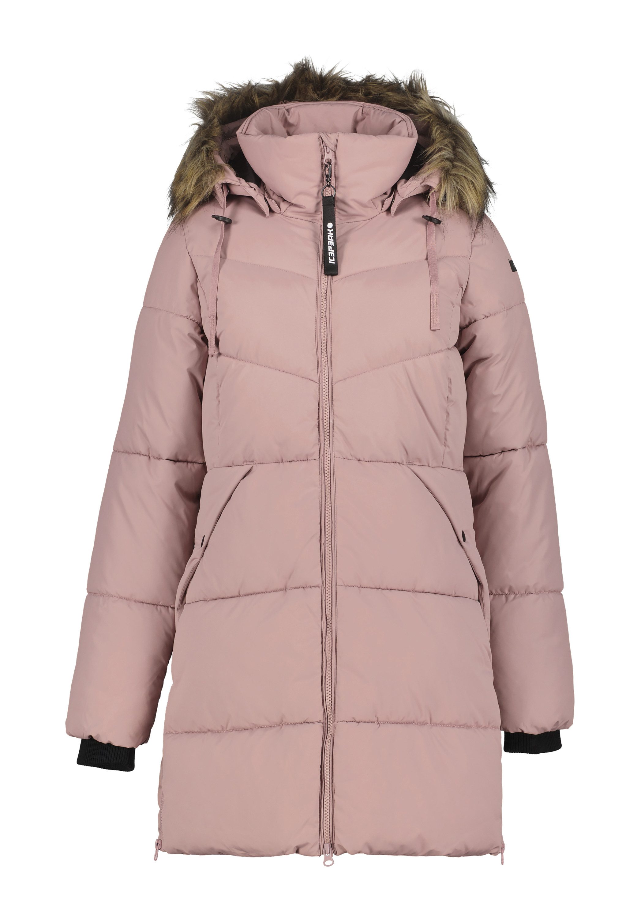 Icepeak Mantel in daunenoptik für damen. Normale Passform. Kapuze mit Kordelzügen. Verstellbare und abnehmbare Kapuze. Elastische Ärmelbündchen. Zwei Vordertaschen. Reißverschlusstasche innen. Logo-Label. Enthält REPREVE®-Fasern, die zu 100 % aus recycelten Materialien bestehen, unter anderem auch aus gebrauchten Plastikflaschen. Funktionalität und Komfort wurde besondere Beachtung beim Design-Prozess dieses A.W.S. ACTIVE-Produkts geschenkt, weswegen es für intensive wie auch für entspannte Aktivitäten geeignet ist. Die Wattierung besteht aus Daunenimitat, das eine exzellente Wärmeisolierung im Verhältnis zu seinem geringen Gewicht bietet. Die Gewebeoberfläche ist wasserabweisend imprägniert. Das winddichte Material bietet optimalen Windschutz und Wärme. Warm gefüttert.