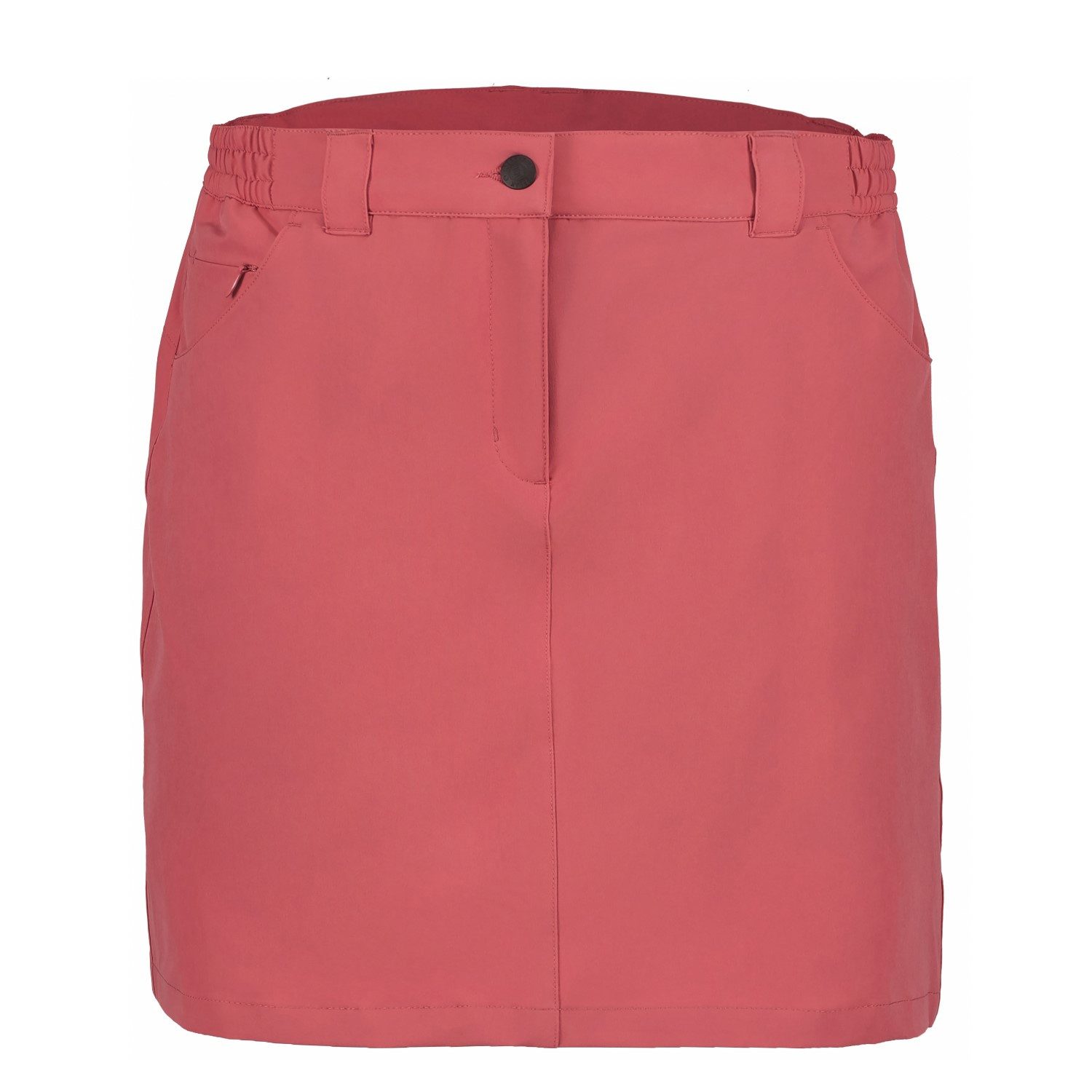 Icepeak Outdoor Rock für Damen. Die Gewebeoberfläche ist wasserabweisend imprägniert. Das 4-Wege-Stretchmaterial dehnt sich in alle Richtungen und sorgt für vollkommene Bewegungsfreiheit. Das Gewebe lässt Feuchtigkeit schnell verdunsten, wodurch ein trockenes und komfortables Tragegefühl stets erhalten bleibt. Eingearbeitete Untershorts blickdicht. Praktische Taschen.