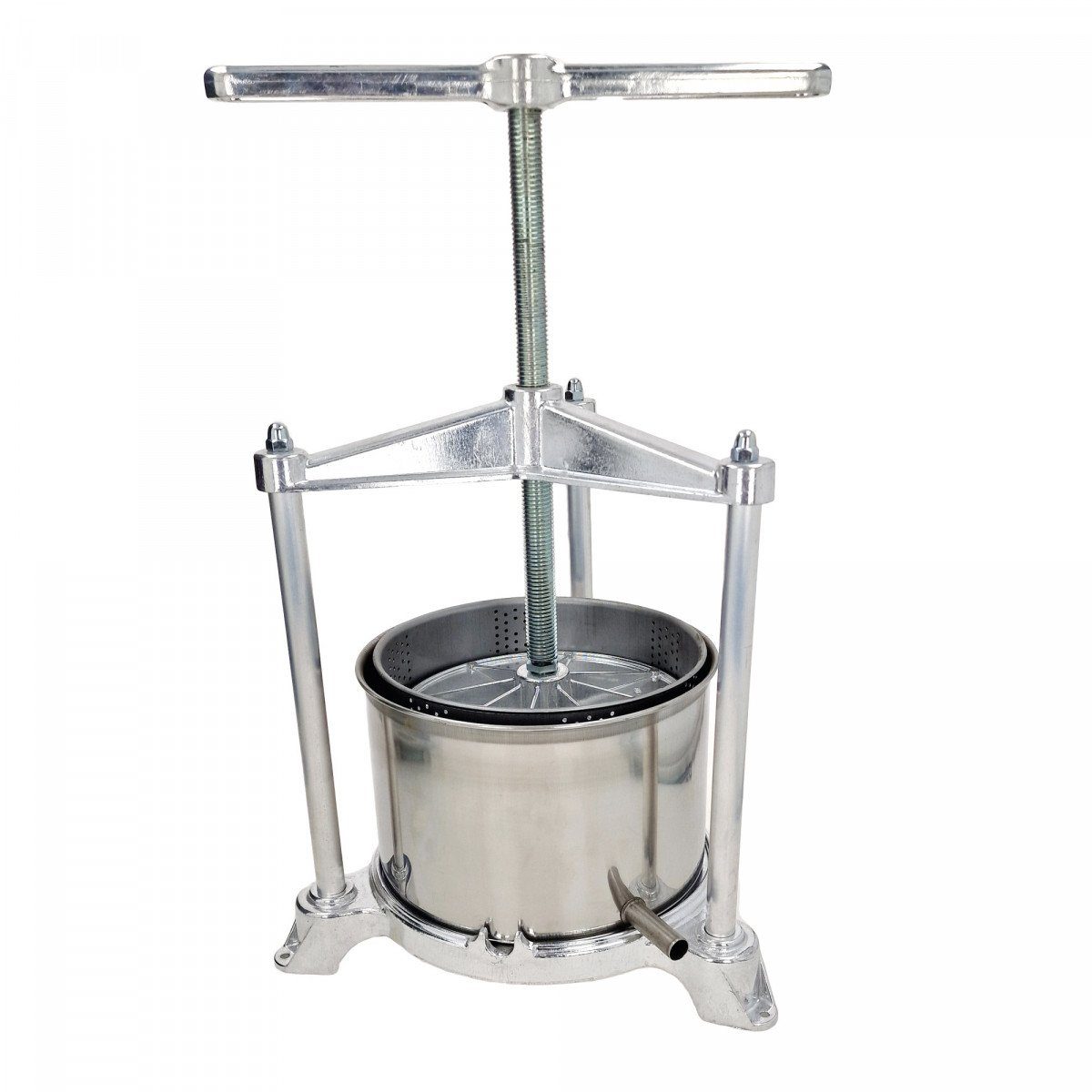 Mit der Maxi Fruchtpresse mit Edelstahl Doppelkorb können Sie zu Hause frische Säfte aus Obst und Gemüse herstellen. Der doppelte Obstkorbs aus Edelstahl und die praktische Auffangschale sorgen für hohe Stabilität und Langlebigkeit des Geräts. Dank der Schraubenlöcher kann die Presse leicht auf jedem Tisch montiert werden. Mit den kompakten Abmessungen von 34 x 32 x 47 cm passt sie auch in kleinere Räume.