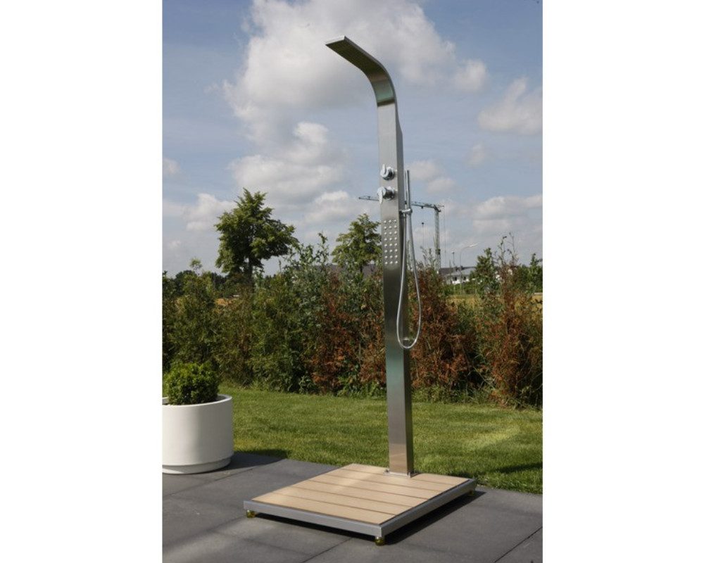 Dank der präzisen Verarbeitung und der Verwendung von Qualitätsmaterialien eignet sich die Dusche ideal für den Einsatz im Außenbereich.