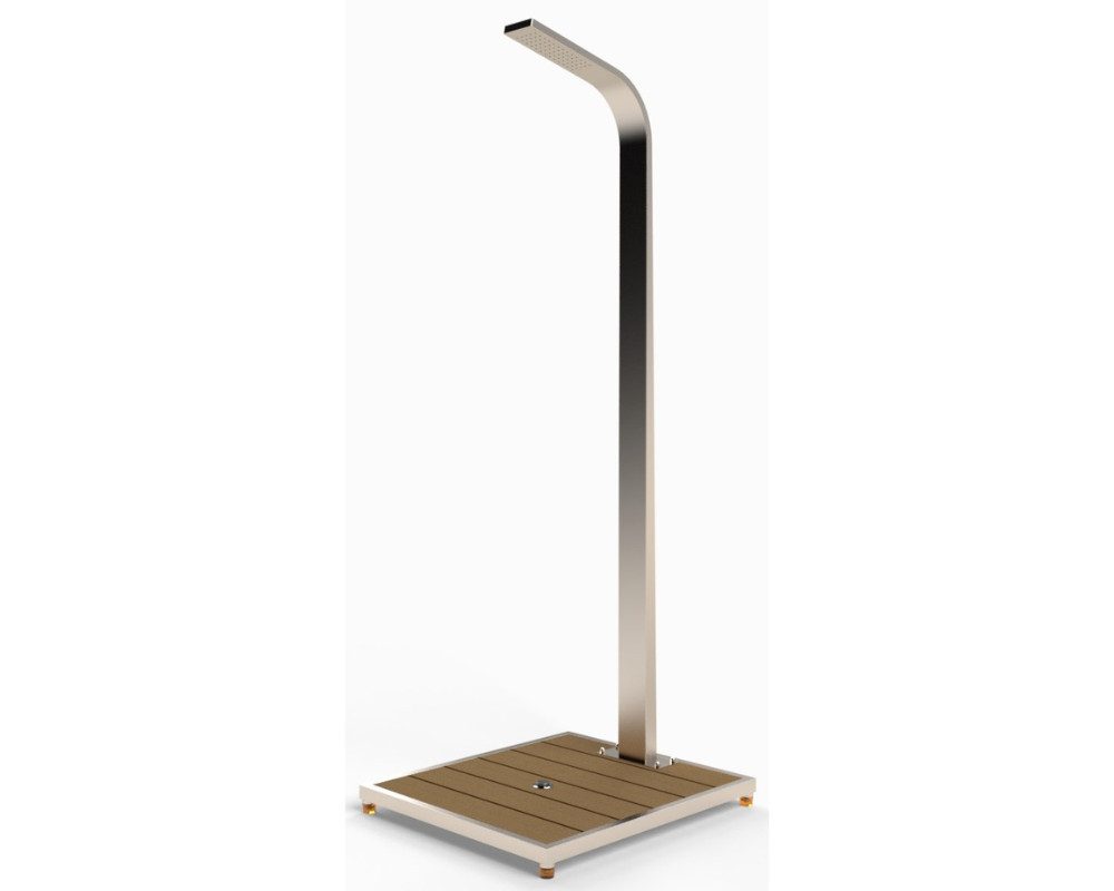 Erfrischung auf "Fußdruck", dazu ein schlichtes und edles Design - die Gartendusche Ibiza von Ideal Eichenwald erfrischt den Körper und das Auge. Die Besonderheit der Dusche Ibiza besteht darin, dass die Bedien Armatur im WPC Holz Rost der Bodenplatte verarbeitet wird. Mit dem einmaligen Drücken der Armatur starten Sie die Dusche, mit nochmaligem Drücken schalten Sie die Dusche ab.
