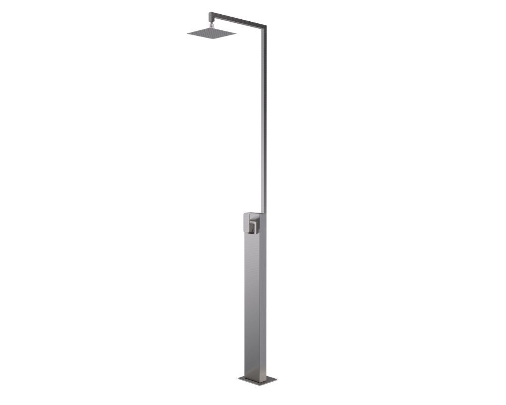 Die Kalt- und Warmwasserdusche Menorca zeichnet sich durch ein klar strukturiertes Design aus. Durch die hochwertigen Edelstahlmaterialien wird der Dusche das "gewisse Etwas" verleitet. Der Wasseranschluss lässt sich ganz einfach über den Bodenflansch anbringen. Die Dusche Menorca ist ausgestattet mit einem Einhebelmischer, die Armaturen sind aus Messing verchromt.