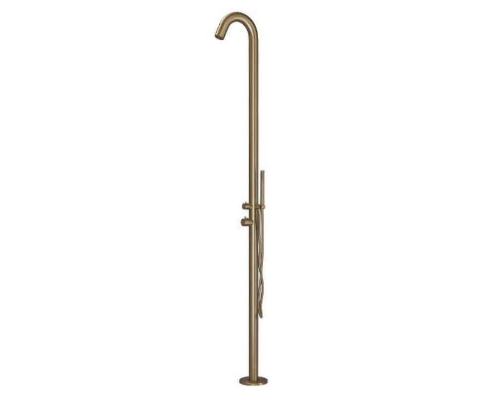 Die Gartendusche SYLT GOLD von Ideal Eichenwald vereint geschliffenes Edelstahl V4A mit einem einzigartigen Design und präsentiert sich mit ihrem neuen Finish in Gold als edlen Hingucker in jedem Garten. Die Dusche SYLT GOLD überzeugt durch ihre Langlebigkeit und Robustheit, da sie aus hochwertigem Material hergestellt wurde. Durch die separate Zufuhr von Kalt- und Warmwasser ist es möglich, die Wassertemperatur individuell zu regulieren.