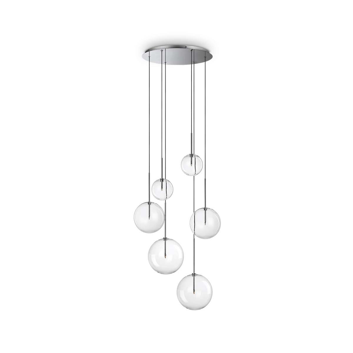 Die Ideal Lux Equinoxe SP ist in 6-, 8- oder 12-flammiger Ausführung erhältlich und jeweils in Chrom oder Antiqued Brass (Messing) verfügbar. Mit klaren Glasdiffusoren verbreitet sie ein angenehm diffuses Licht und unterstreicht ihr elegantes Design.