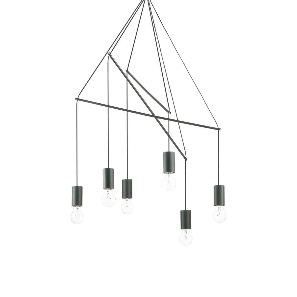 Die Ideal Lux Pop SP Pendelleuchte kombiniert ein minimalistisches Metallgestell in Schwarz mit offenen E27-Fassungen. Dadurch entstehen moderne Akzente mit klarer Formensprache.