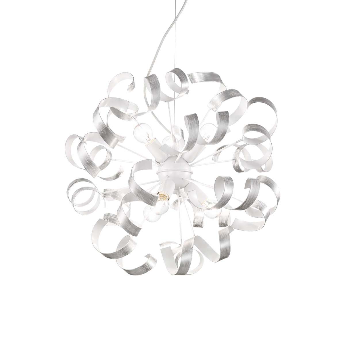 Die Ideal Lux Vortex SP6 überzeugt durch ihr dekoratives Design mit geschwungenen Metall-Elementen und einem eindrucksvollen Ø von ca. 53 cm. Erhältlich in Silber oder Gold, fügt sie sich stilvoll in Wohnräume ein, genauer über Esstisch oder in großzügige Bereiche.