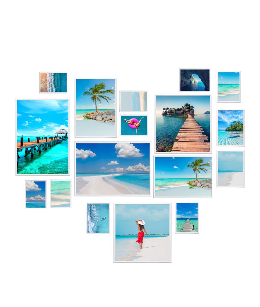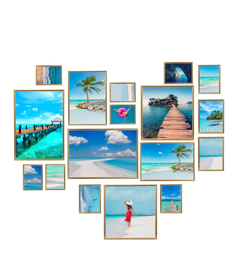 Das Set umfasst 17 Bilderrahmen in verschiedenen Formaten.