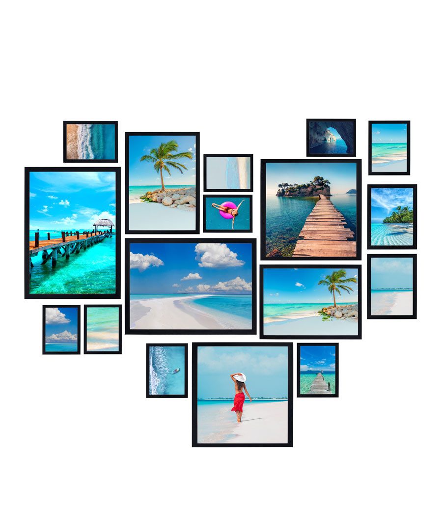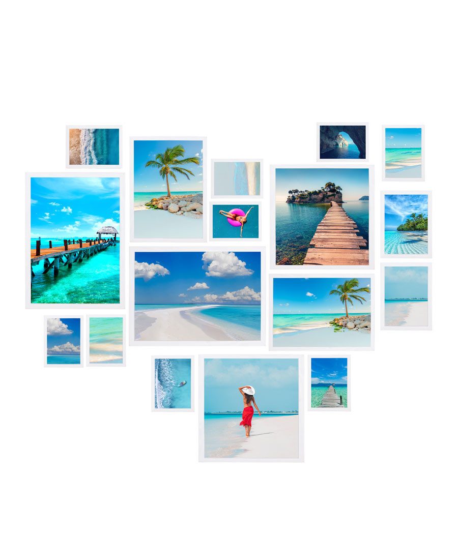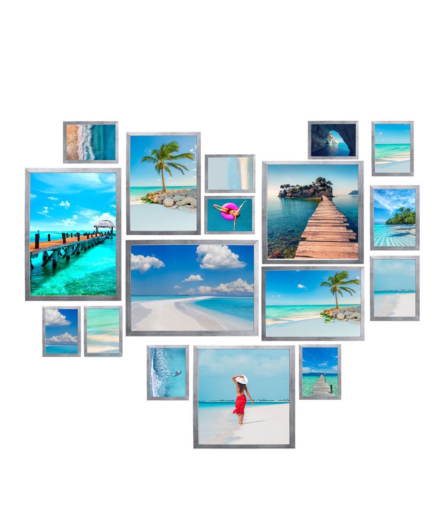 Das Set umfasst 17 Bilderrahmen in verschiedenen Formaten.