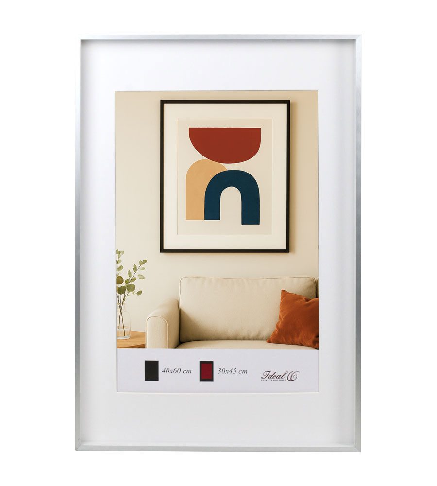 Das moderne Blockprofil (7,5 mm breit × 40 mm tief) aus gebürstetem Aluminium ist formstabil, langlebig und edel im Look. Die stabile schwarze Hartfaser-Rückwand ist mit einem Aufsteller bis DIN A4 und integrierten Aufhängern für Hoch- und Querformat ausgestattet – für maximale Flexibilität.