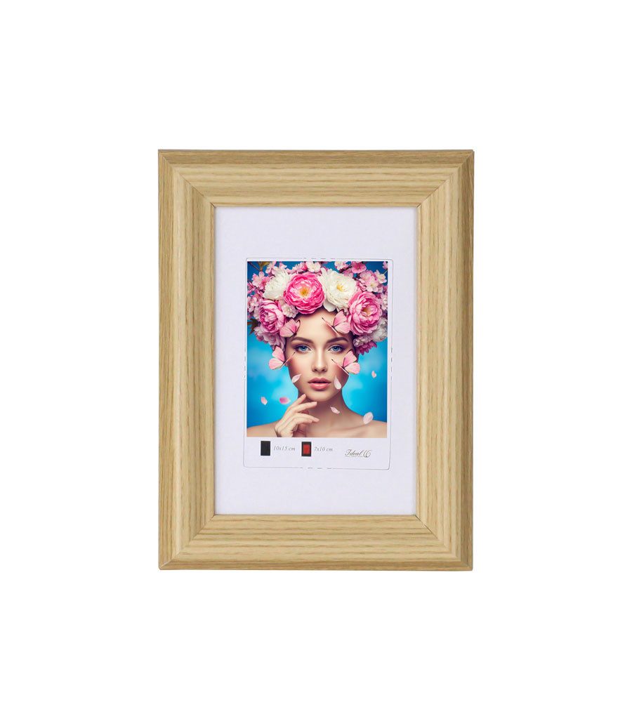 Stilvoll, robust und vielseitig: Der MDF-Bilderrahmen im Format 10×15 cm überzeugt mit eleganter Optik und langlebiger Qualität. Das breite Halbrundprofil (24 mm breit, 20 mm tief) sorgt für eine klassische Rahmenform, während die Hartfaser-Rückwand und die edle Dekorfolierung dem Rahmen ein hochwertiges Finish verleihen.