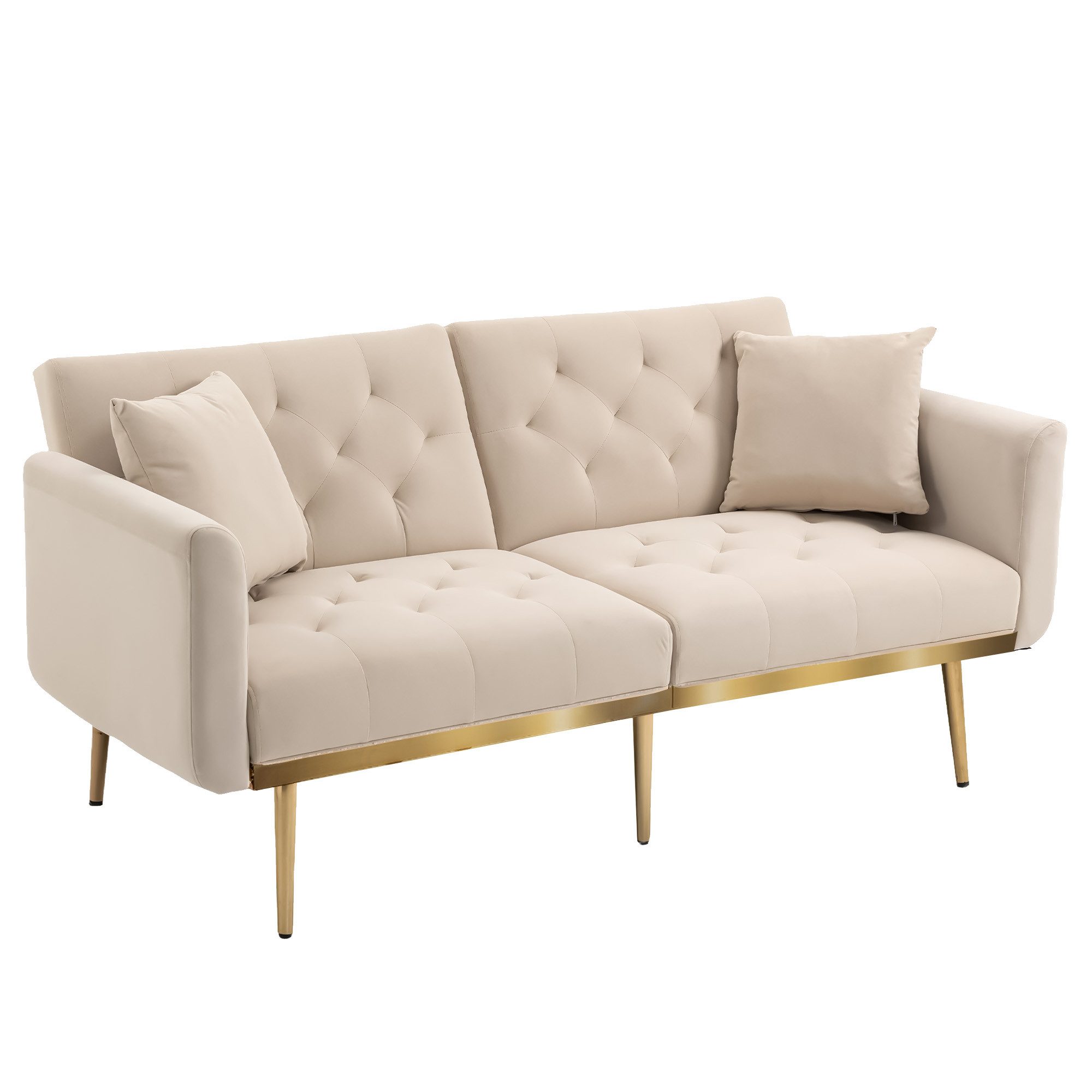 3. Vielseitig und leicht zu montierenDieses Schlafsofa lässt sich einfach aufbauen und passt dank seiner kompakten Размер ideal in verschiedene Räume, vom Wohnzimmer bis zum Gästezimmer. Seine goldenen Metallfüße und die samtige Oberfläche sorgen für ein elegantes Finish, das jedem Raum einen Hauch von Luxus verleiht.