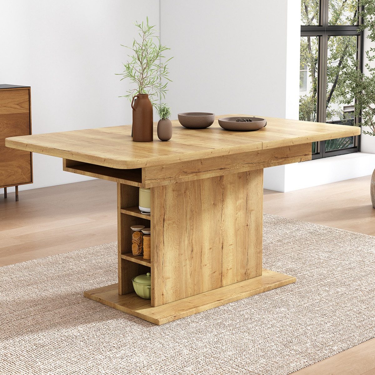 Der erweiterbare Esstisch besticht durch sein schlichtes, elegantes Design, das in jedes moderne Zuhause passt. Er eignet sich perfekt für Familienessen oder gemütliche Kaffeerunden, während er sich flexibel an Ihre Bedürfnisse anpasst. Mit einer Tragkraft von bis zu 60 kg bietet er Stabilität und Vielseitigkeit für jeden Anlass.