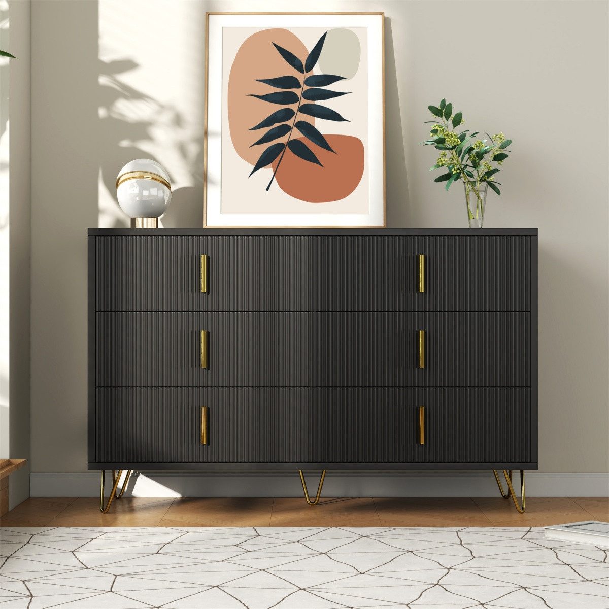 2. Vielseitige AufbewahrungslösungDie sechs Schubladen bieten ausreichend Stauraum für Kleidung, Geschirr oder andere persönliche Gegenstände, was das Sideboard sowohl praktisch als auch dekorativ macht – ideal für das Wohnzimmer oder Schlafzimmer.
