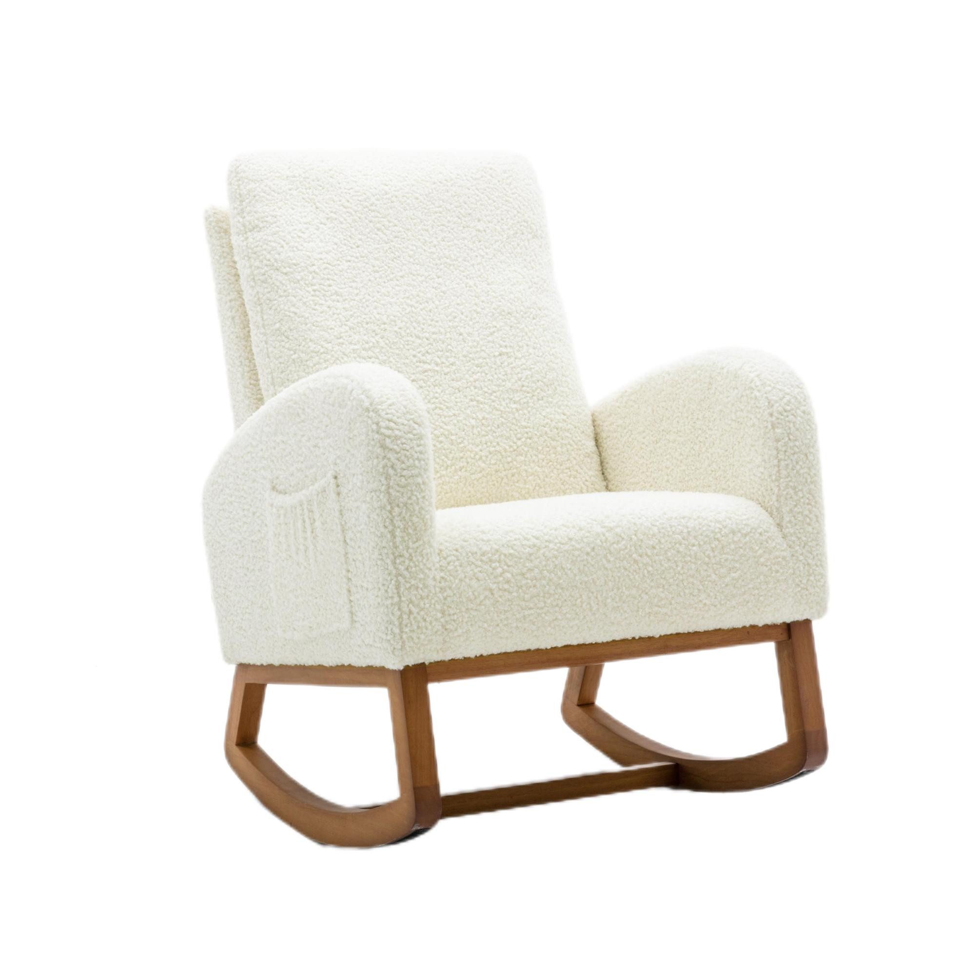 Der Schaukelstuhl verfügt über eine praktische Seitentasche, die ideal ist für die Aufbewahrung von Büchern, Zeitschriften, Fernbedienungen und anderen kleinen Gegenständen. So haben Sie alles, was Sie brauchen, bequem griffbereit, ohne aufstehen zu müssen.