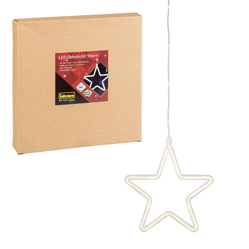 Idena 30199 - LED Dekolicht Stern in warm weiß, 6 Stunden Timer Funktion, batteriebetrieben, mit Saugnapf, Innen und Außenbereich, ca. 23 x 23 cm, als Fensterbild und Stimmungslicht