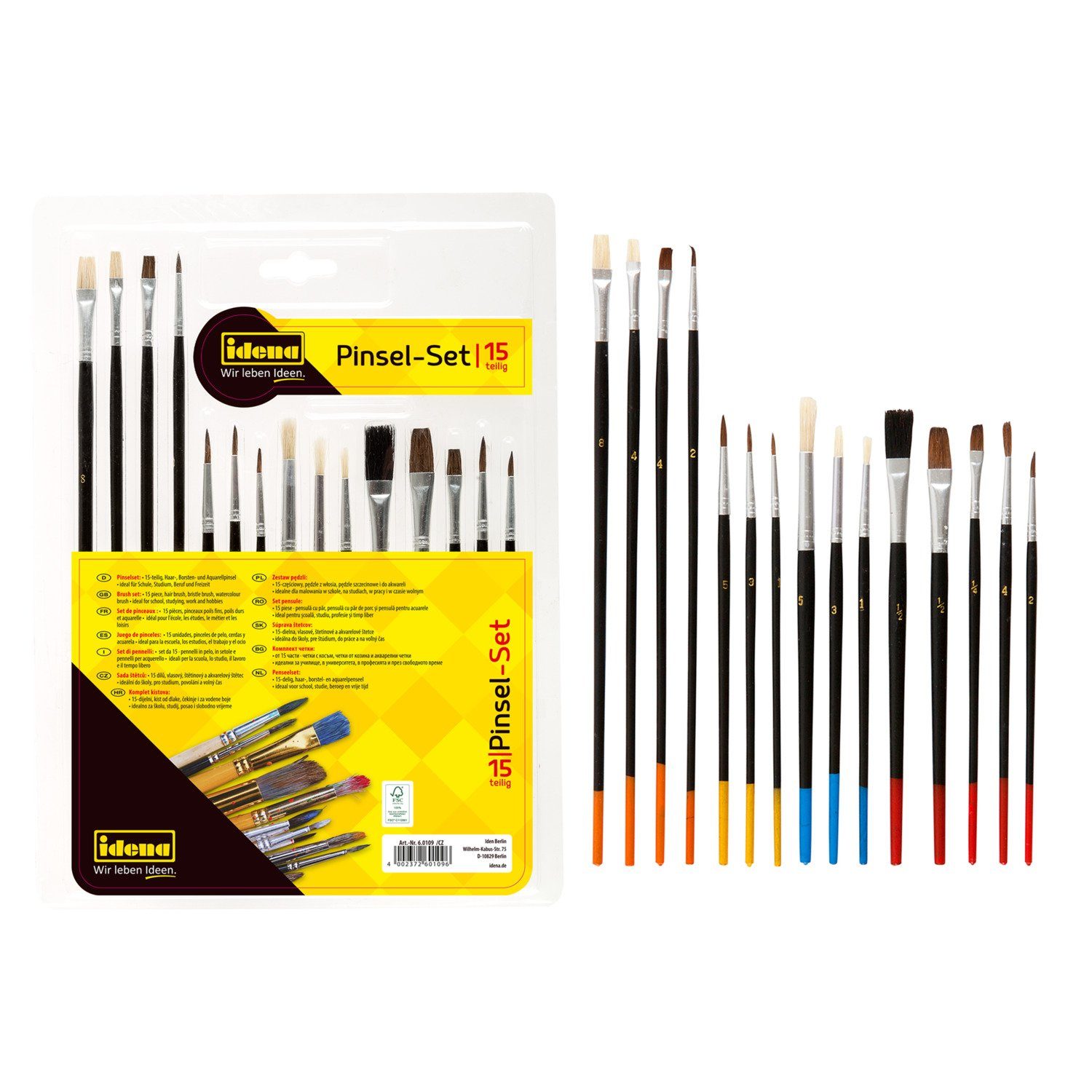 Die perfekte Grundausstattung für deine künstlerischen Bedürfnisse! Das 15-teilige Set von Idena bietet dir als Künstler eine zuverlässige Basisausrüstung mit verschiedenen Pinselarten wie Haar-, B