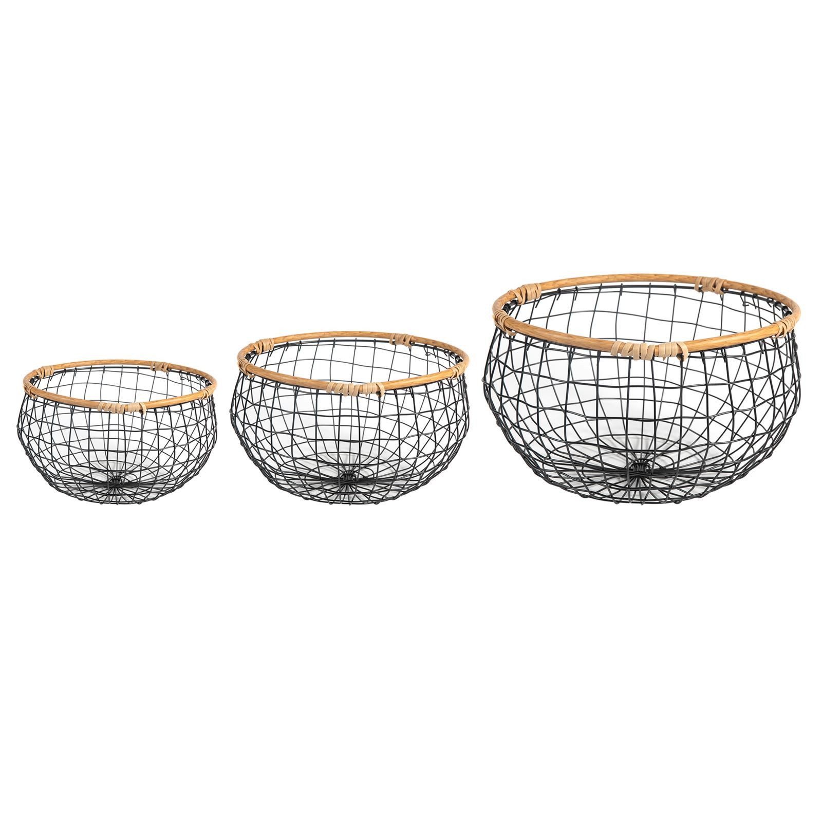 Der Metallkorb Lou im 3er Set bietet vielseitige Verwendungsmöglichkeiten. Mit einem stabilen Rahmen in Rattan Optik eignen sich die Körbe ideal für Bad, Kleiderschrank oder Abstellkammer. Die leeren Körbe können platzsparend gestapelt werden. Ob für Kosmetikartikel, kleine Handtücher oder als Organizer, die schwarzen Körbe mit natürlicher Optik sind praktisch und stilvoll zugleich.