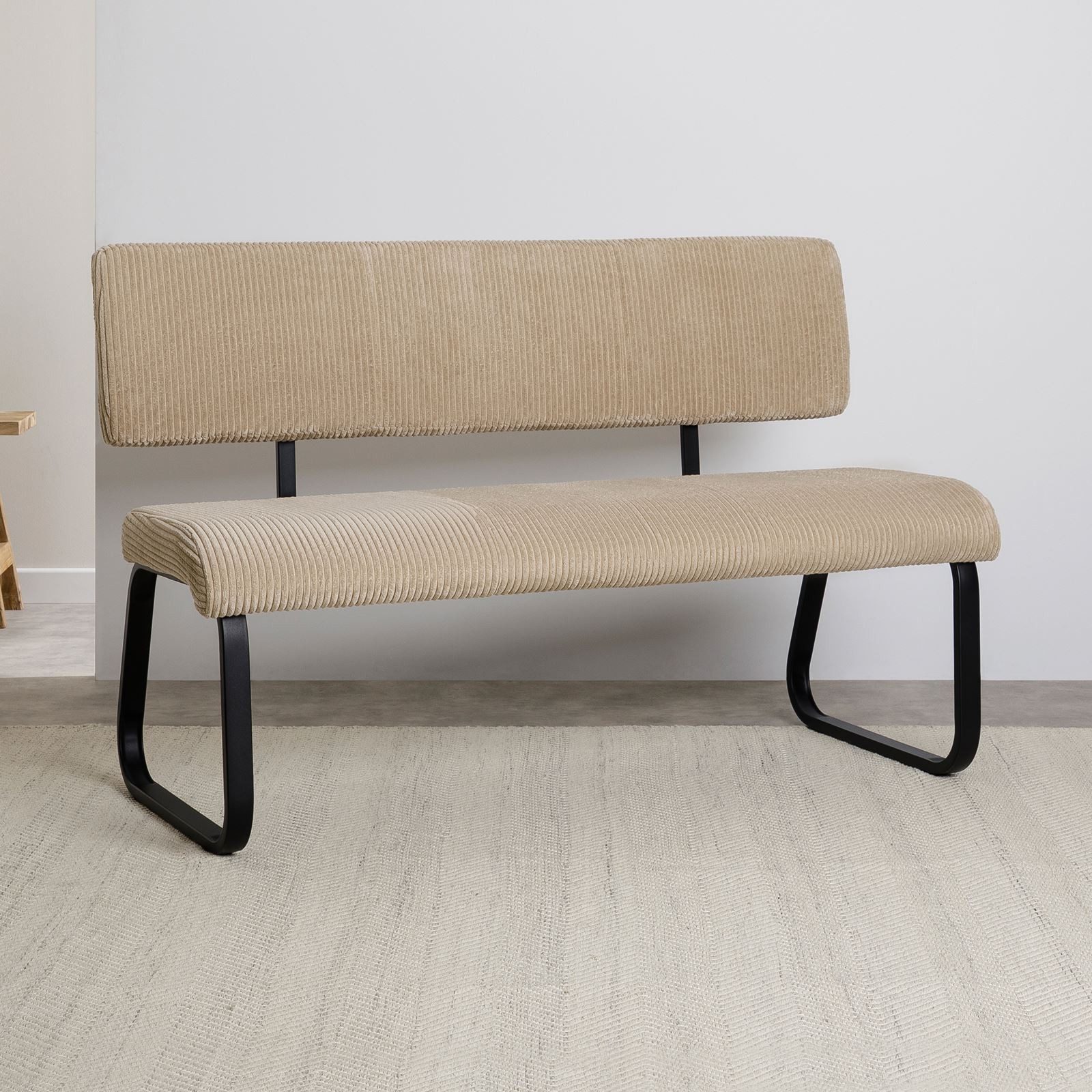 Diese stilvolle Sitzbank ist die perfekte Ergänzung für Ihr Esszimmer. Mit ihrem weichen Kordbezug in Beige und dem schwarzen Metallgestell verbindet sie modernen Wohnstil mit hohem Sitzkomfort. Die hochwertige Polsterung sorgt für angenehmes Sitzen, ob bei geselligen Runden oder im Alltag. Dank des schlichten Designs lässt sich die Bank vielseitig mit anderen Esszimmermöbeln kombinieren und schafft eine gemütliche Atmosphäre.