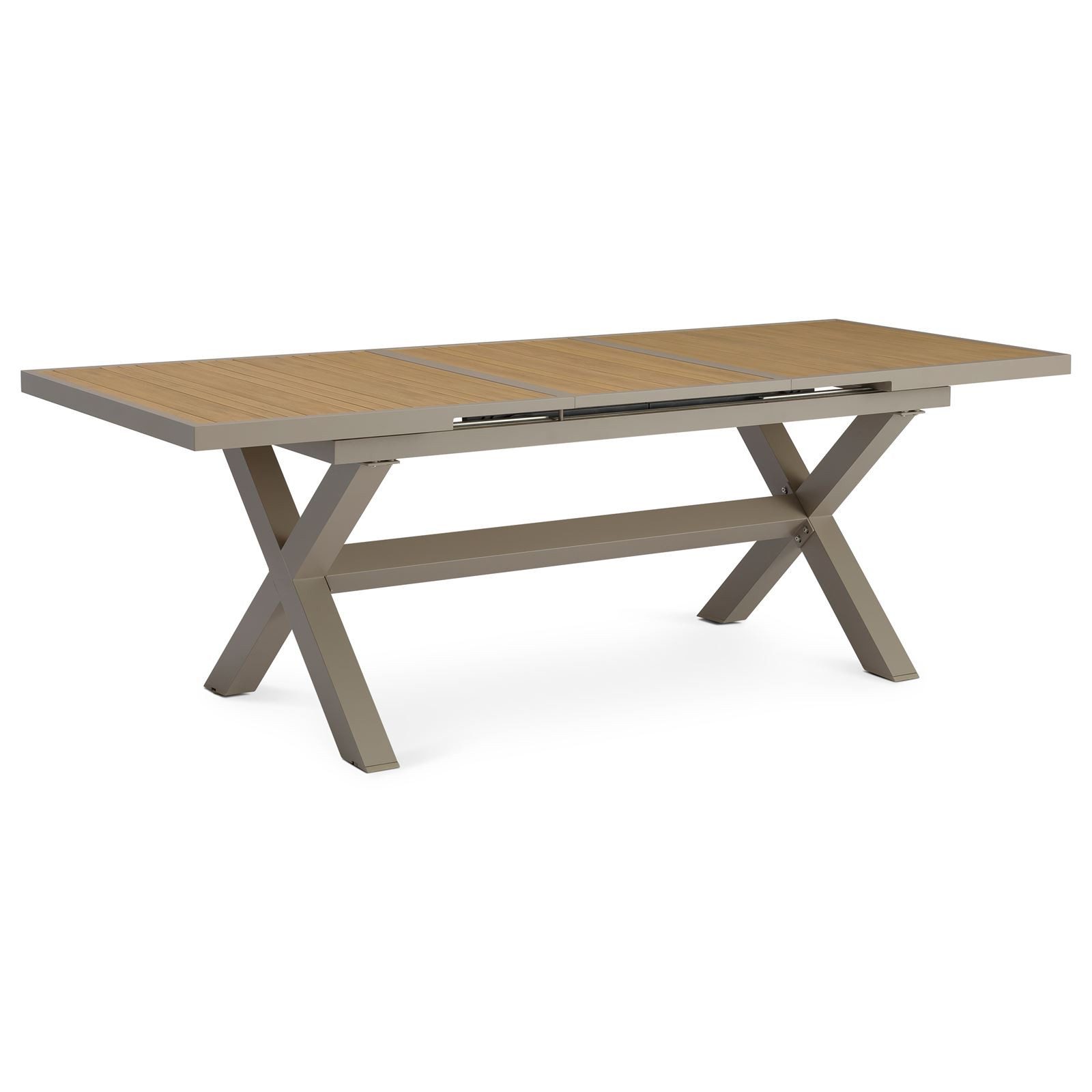 Der ausziehbare Terrassentisch LAGOA ist die perfekte Lösung für alle, die ihre Zeit im Freien stilvoll und flexibel genießen möchten. Mit seinem praktischen Auszugsmechanismus bietet der Tisch im Handumdrehen Platz für 6 bis 8 Personen. Die wetterfeste Tischplatte in Holzoptik verleiht dem Tisch eine warme, natürliche Ausstrahlung, während das robuste Aluminiumgestell für Stabilität und Langlebigkeit sorgt. Ob auf der Terrasse, dem Balkon oder mitten im Garten – LAGOA verbindet Funktionalität mit modernem Design und macht jede Outdoor-Ecke zu deinem neuen Lieblingsplatz.