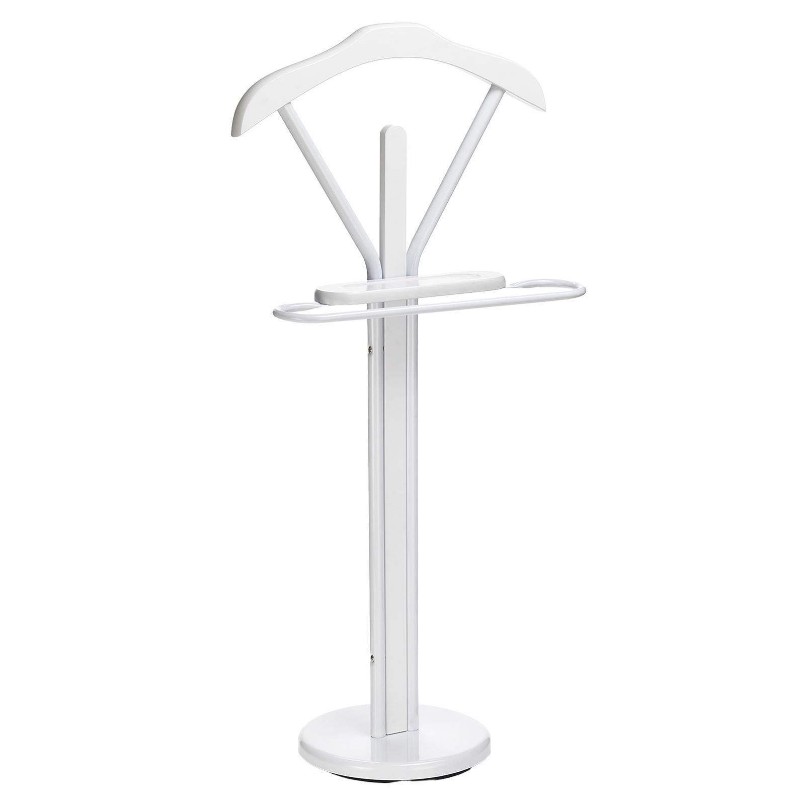 Entdecken Sie den elegantenten Herrendiener Matteo, eine Synthese aus Funktionalität und Design. Ausgestattet mit einem Hosenbügel und einem Sakkohalter erleichtert der stumme Diener Ihren Alltag und hält Ihre Kleidung stets griffbereit. Eine zusätzliche Ablage bietet Platz für Ihre Accessoires wie Schmuck und Brieftasche. Das moderne, zeitlose Design aus weißem Metall und Holz passt sich jedem Ambiente an und ist ein Blickfang in jedem Raum.