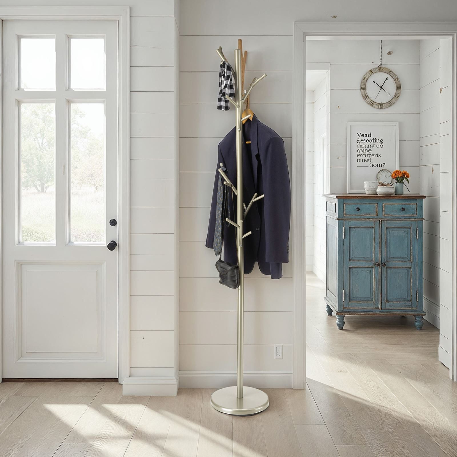 Der Garderobenständer ZENO überzeugt durch seine klare Formensprache und durchdachte Funktion. Die organisch geformten Haken in Baumoptik machen ihn zum stilvollen Blickfang in jedem Flur oder Schlafzimmer. Mit sechs Haken bietet er ausreichend Platz für Jacken, Taschen und Accessoires, während die massive Fußplatte aus Metall für einen sicheren Stand sorgt.