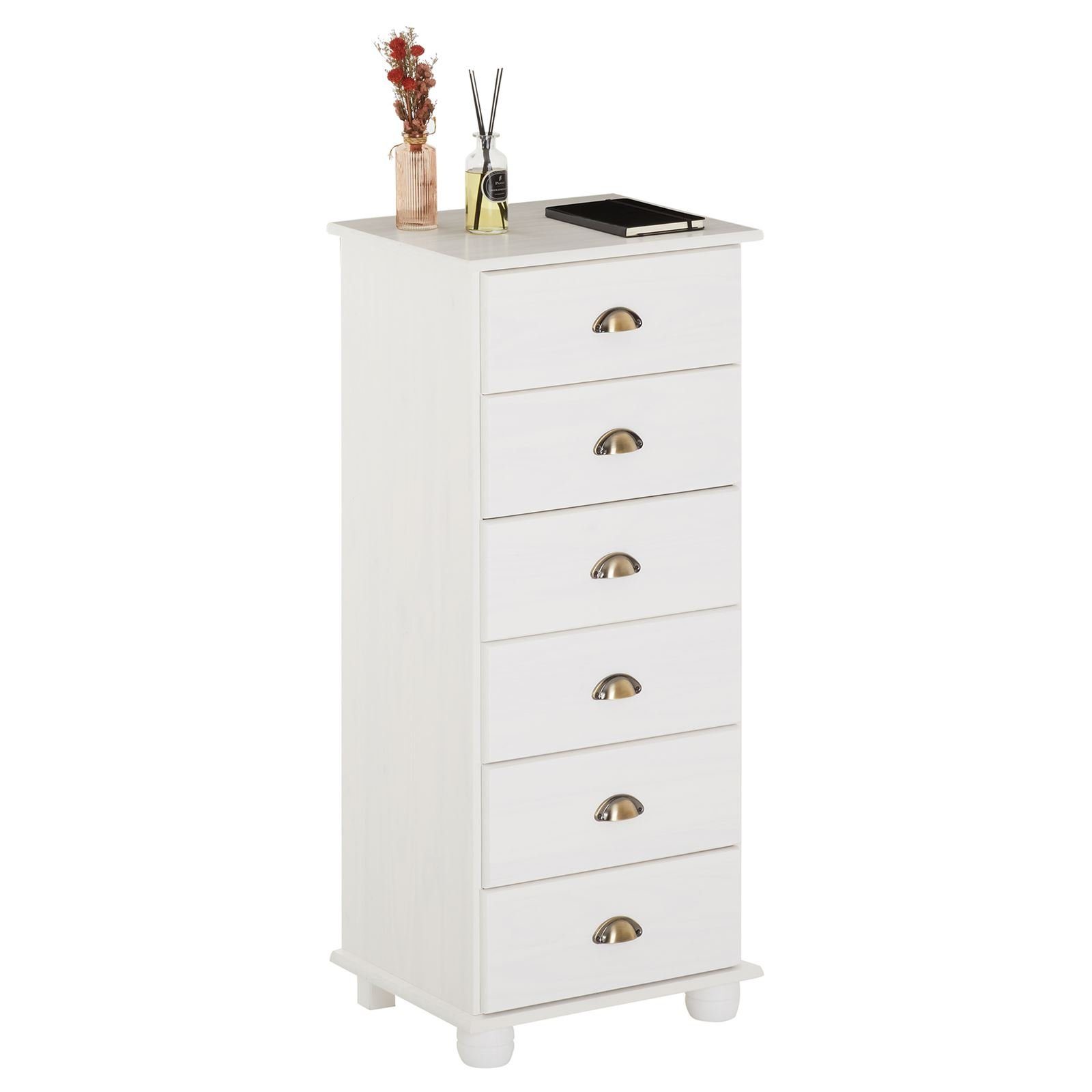 macht sich im Landhausstil in Wohn- und Esszimmer ebenso gut wie in Diele oder Flur. Aufgrund der zahlreichen Schubladen bietet diese Kommode Stauraum für alles, was Sie staubgeschützt lagern möchten. Die natürliche Maserung des Holzes bleibt erhalten, die Kommode sieht dadurch sehr naturbelassen aus. Die eleganten Griffe in Muschel- Optik runden das ganze ab.