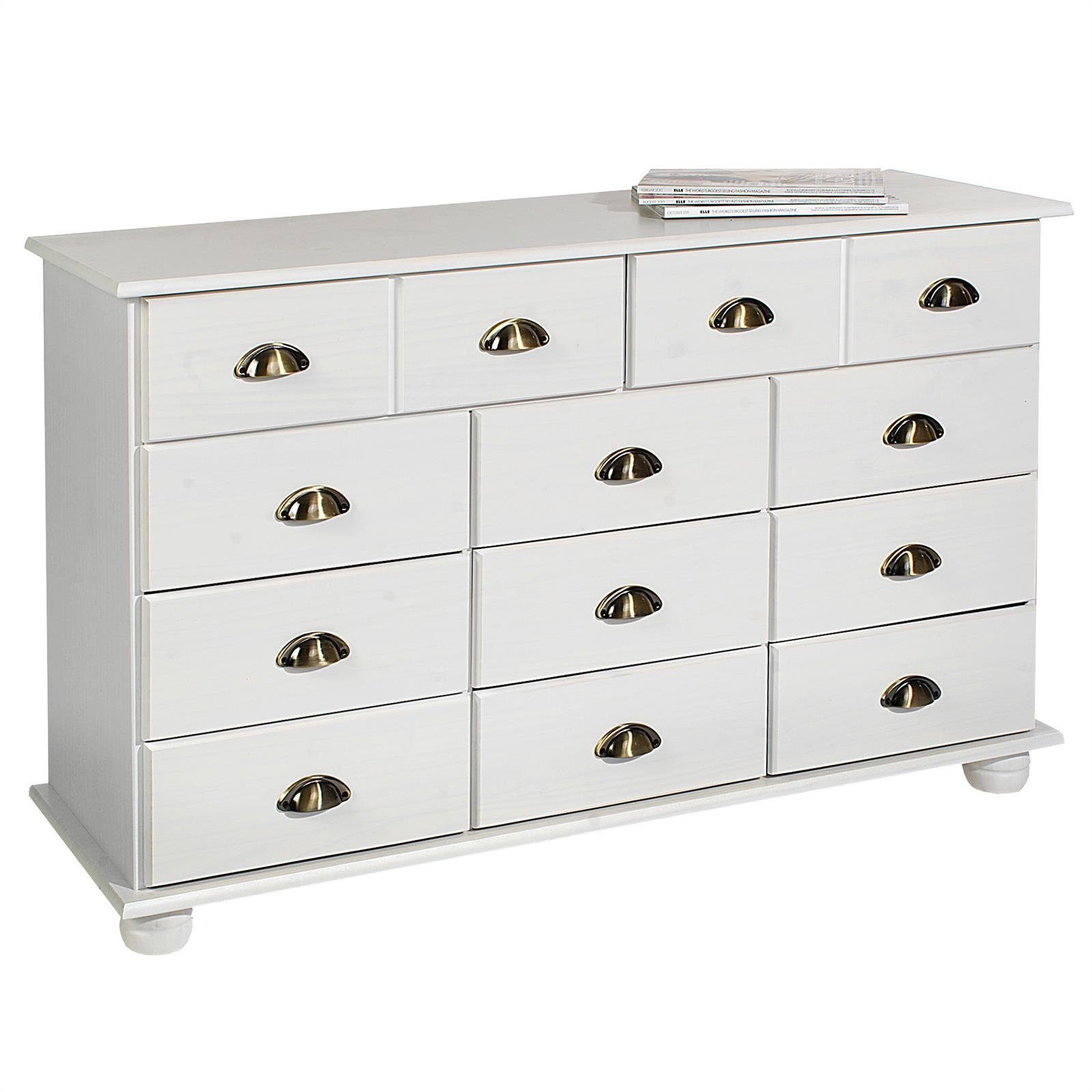 ist mit 9 kleineren Schubladen und 2 großen Schubladen ausgestattet und bietet Ihnen somit genügend Stauraum für allerhand Dinge, wie z.B. Dekorationsmaterial, Tischdecken oder auch Kleidung. Im typischen Landhausstil gefertigt, mit Muschelgriffen und Kugelfüßen versehen, wertet diese Kommode Ihr Wohnbereich stilvoll auf und bringt Wärme und Gemütlichkeit in Ihr Heim.
