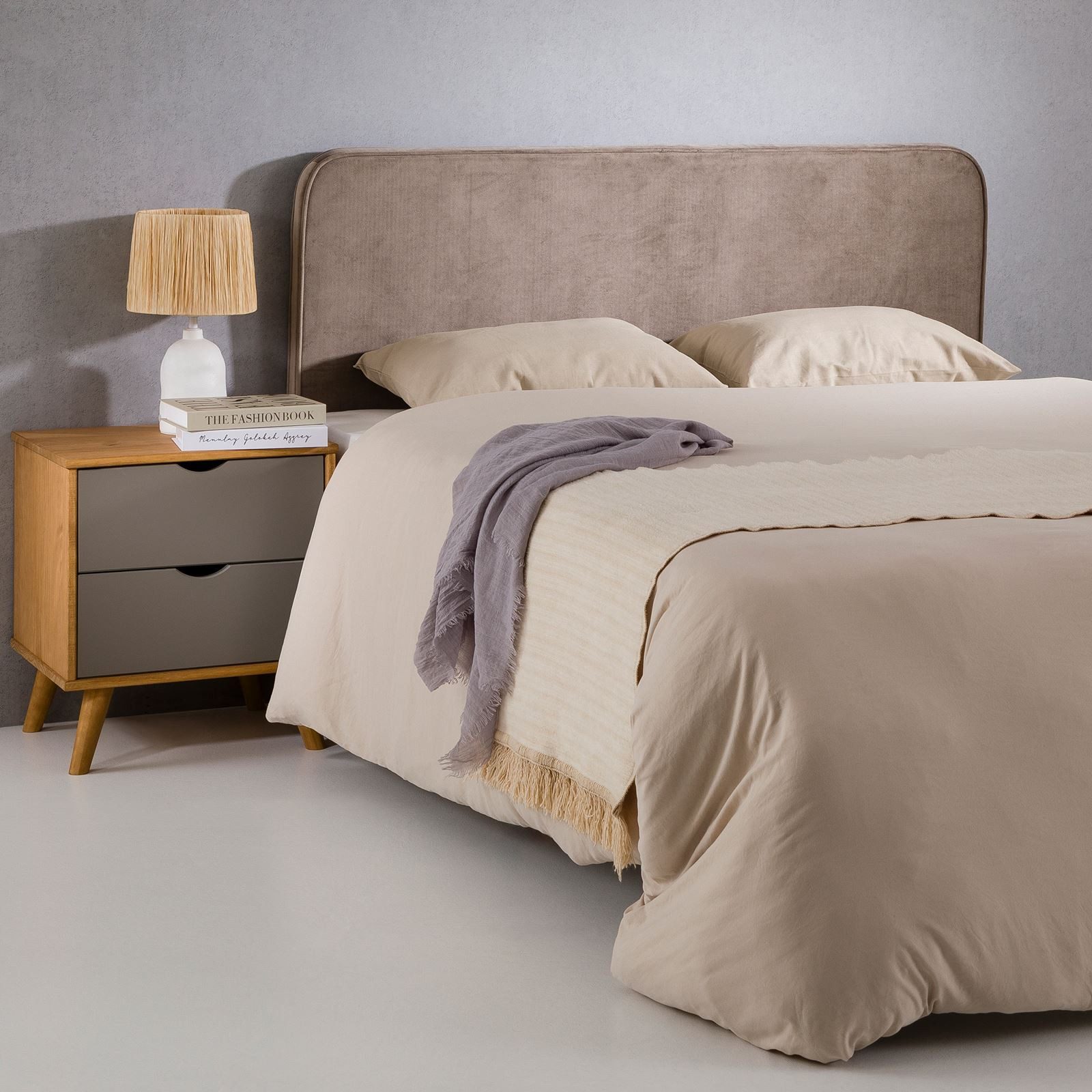 Unser Bettkopfteil CELIA ergänzt dein Bettgestell perfekt und bietet eine bequeme, gepolsterte Rückenlehne für höchsten Komfort. Dank der Wandbefestigung kann man es flexibel in der gewünschten Höhe anbringen – perfekt für Boxspringbetten und andere Bettgestelle. Der weiche Samtstoff in braungrau verleiht deinem Schlafzimmer eine elegante Note. Widerstandsfähig und komfortabel, ist dieses Headboard ideal für entspannte Abende beim Lesen, Fernsehen oder einfach zum Entspannen.