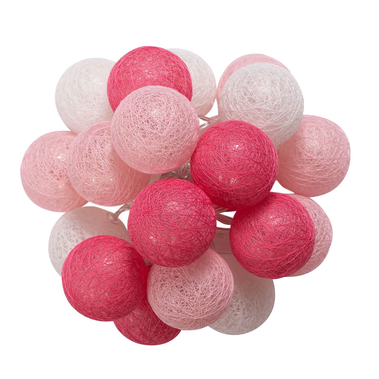 sorgt für schöne und gemütliche Momente in Ihren Wohnräumen. Dekorieren Sie das Kinderzimmer Ihre Lieblings mit dieser schönen Lichtgirlande und schaffen Sie gemütliche und romantische Stunden, wenn das warmweiße Licht durch die Kugeln bricht und einzigartige Formen an die Wände projiziert. Besonders hübsch ist die Kugel-Lichterkette um ein Bettgestell oder den Spiegel drapiert. An freiliegenden Deckenbalken oder Regalen umwickelt ist die Lichtergirlande nicht nur schön anzusehen, sondern sorgt bei Dämmerung für eine harmonische Atmosphäre. Die 20 Kugeln, in welchen sich jeweils ein LED Lämpchen befindet sind jeweils 6 cm groß und haben einen Abstand von 15 cm zueinander.