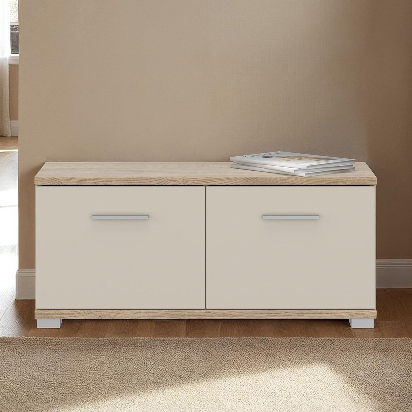 Die Bilbao vereint Funktionalität und Ästhetik in einem Möbelstück. Diese Bank bietet nicht nur eine bequeme Sitzgelegenheit, sondern auch praktischen Stauraum mit zwei Türen und vier Fächern, ideal für bis zu acht Schuhpaare. Gefertigt aus hochwertiger MDF und foliert in den ansprechenden Farben Kaschmir und Cremona Eiche, passt sie perfekt in jeden Flur und ergänzt andere Garderobenmöbel stilvoll.