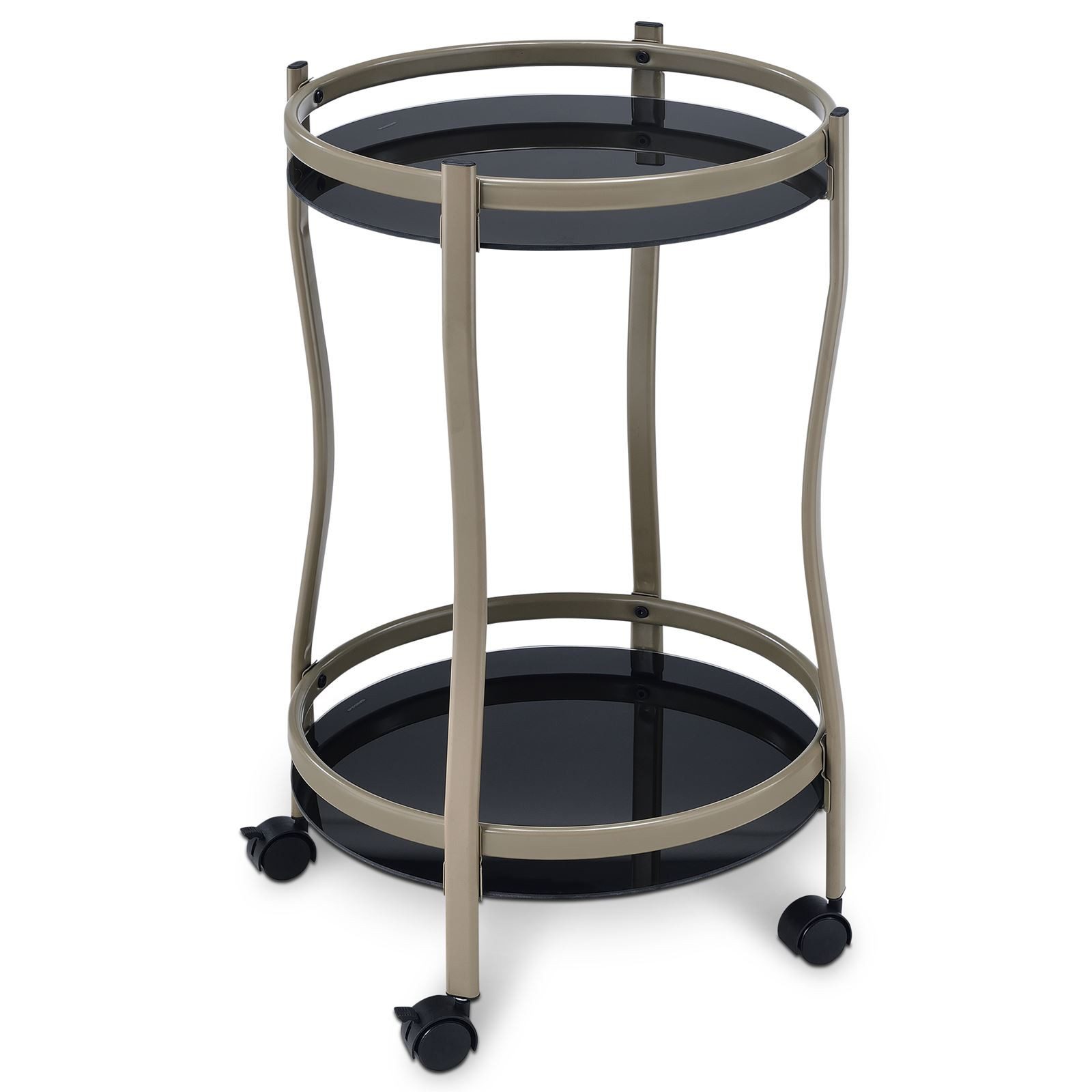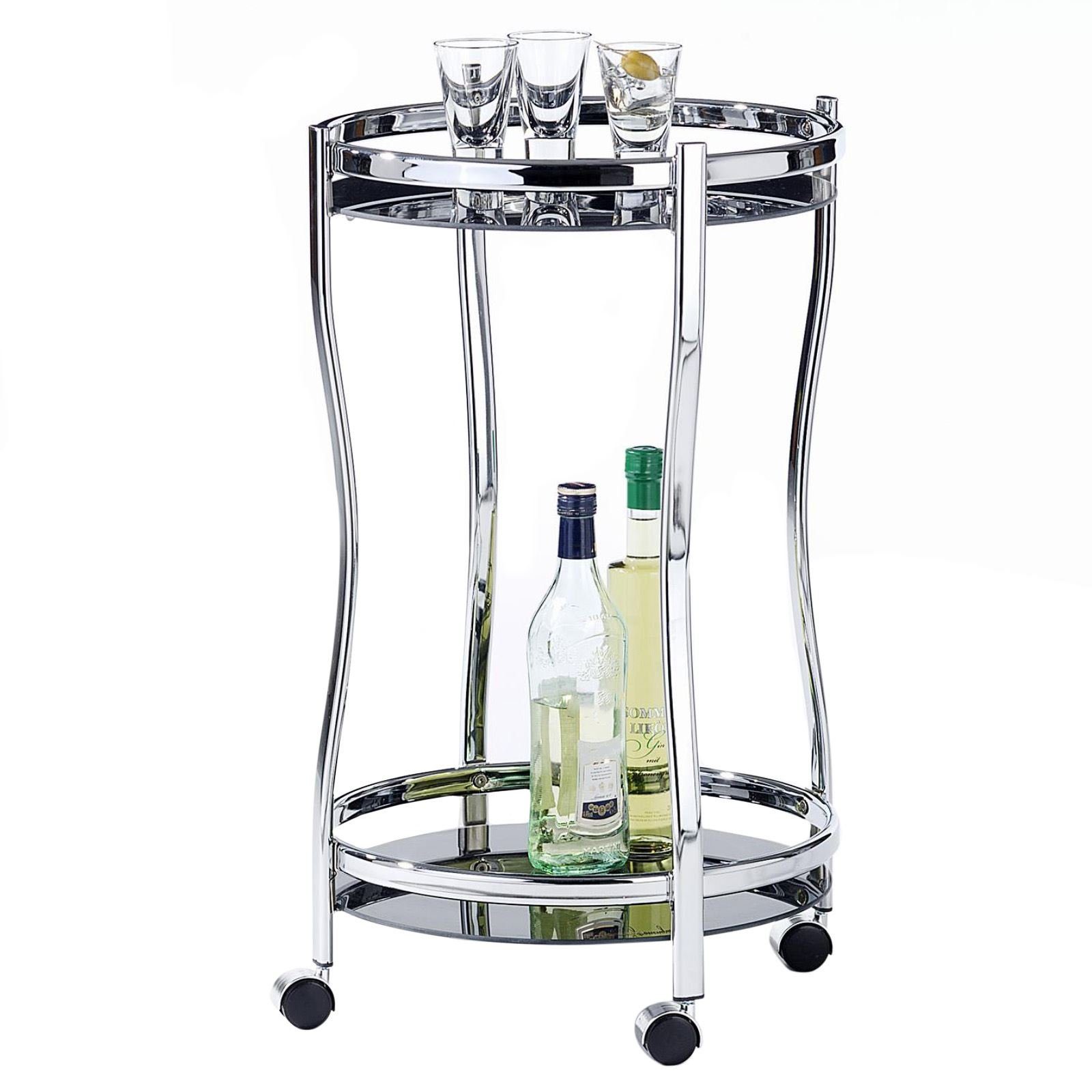 Der Barwagen VEGA ist die ideale Minibar für Ihr Zuhause. In Ihrem Wohn- oder Esszimmer haben Sie so immer den passenden Aperitif für Ihre Gäste bereit. Auf den 2 Sicherheitsglasplatten finden einige Flaschen und Gläser Platz. Dank den 4 Rollen ist der elegante runde Servierwagen VEGA kurzerhand mobil.