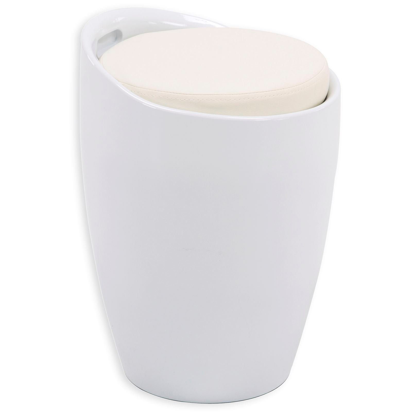 ist ein wahres Multitalent. Die gepolsterte Sitzfläche ist mit einem hochwertigen Kunstleder bezogen und abnehmbar. Der darunter liegende Stauraum bietet viel Platz zur Aufbewahrung und gleichzeitig dient der Hocker als gemütliche Sitzgelegenheit. Die moderne Kombination aus robustem Kunststoff und hochwertigem Lederimitat machen ihn zu einem langlebigen Möbelstück für Ihr komplettes Heim.