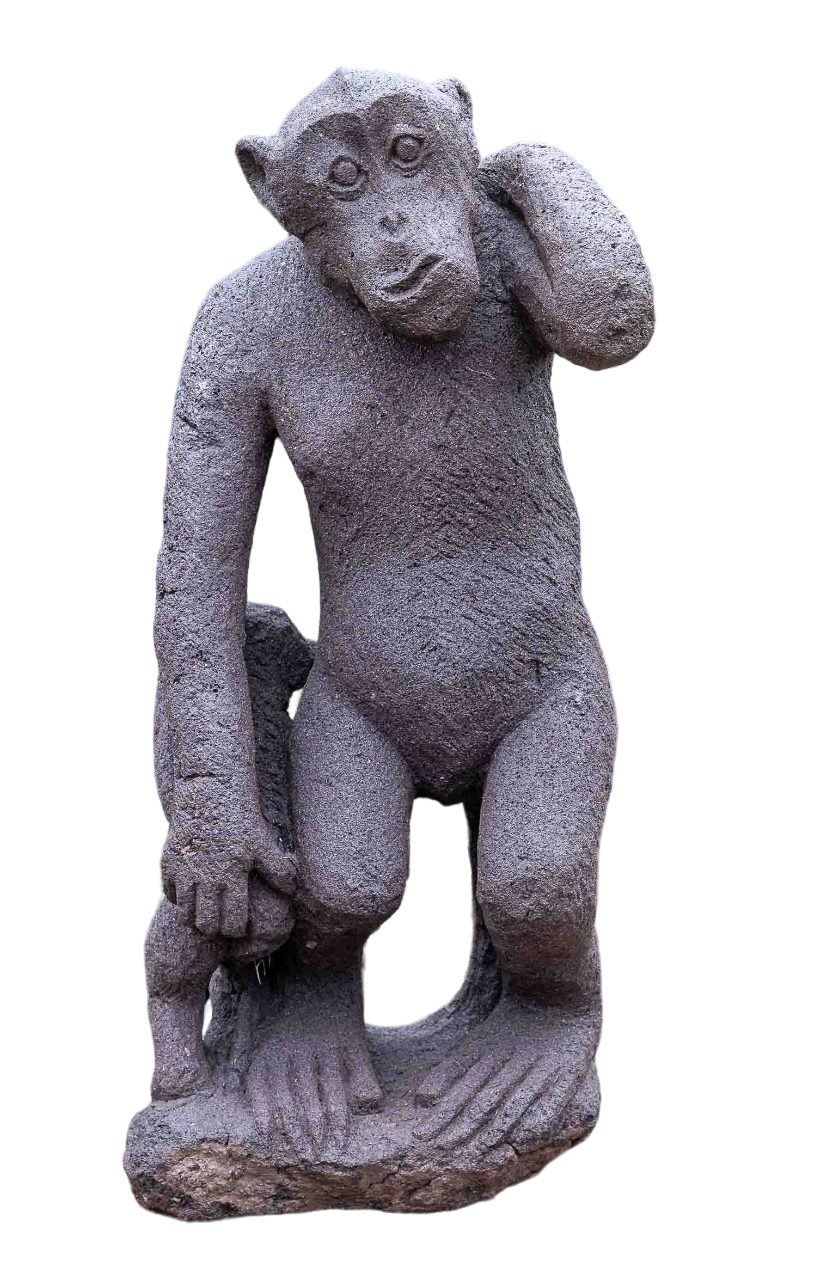 Gartenfigur IDYL Lavastein Figur Affe mit Kind