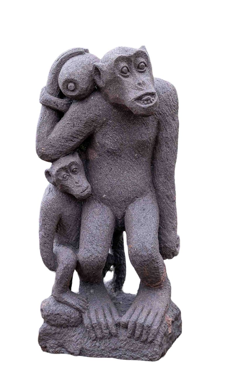 Gartenfigur IDYL Lavastein Figur Affenfamilie