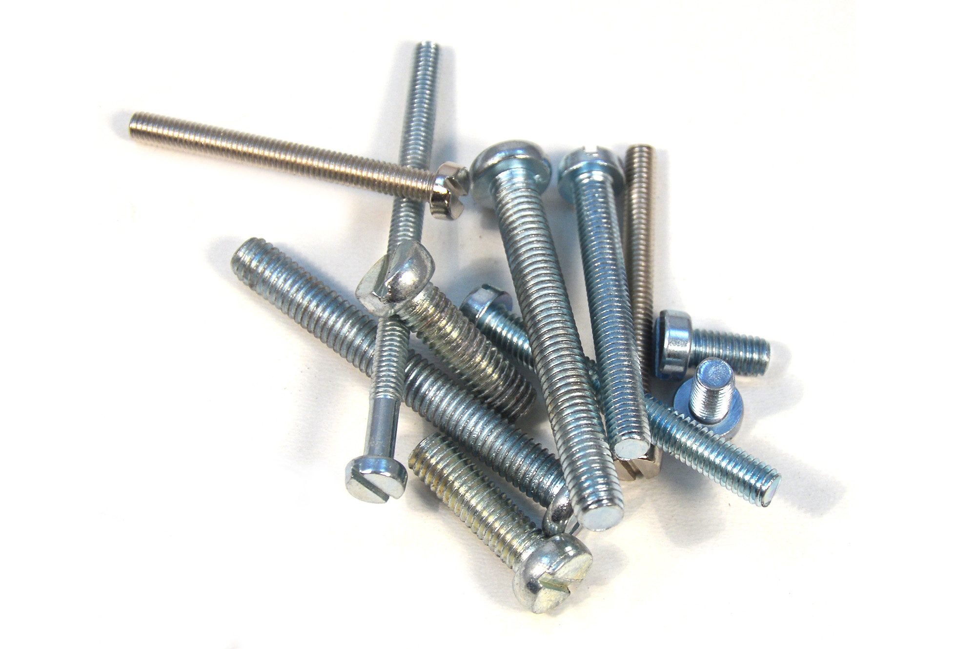 Die Schraube nach DIN 84 hat einen zylindrischen Kopf mit geradem Schlitz und einem metrischen Gewinde. Durch den Schraubenkopf ideal für viele Anwendungen, bei denen ein vorstehender Kopf zulässig ist. Sie sind so konzipiert, dass sie mit Gewindemuttern oder Löcher in den Teilen verbunden werden, die sie zusammenhalten sollen. Die Schrauben bestehen aus Kohlenstoffstahl der Festigkeitsklasse 4.6 und sind verzinkt. Entspricht ISO 1207
