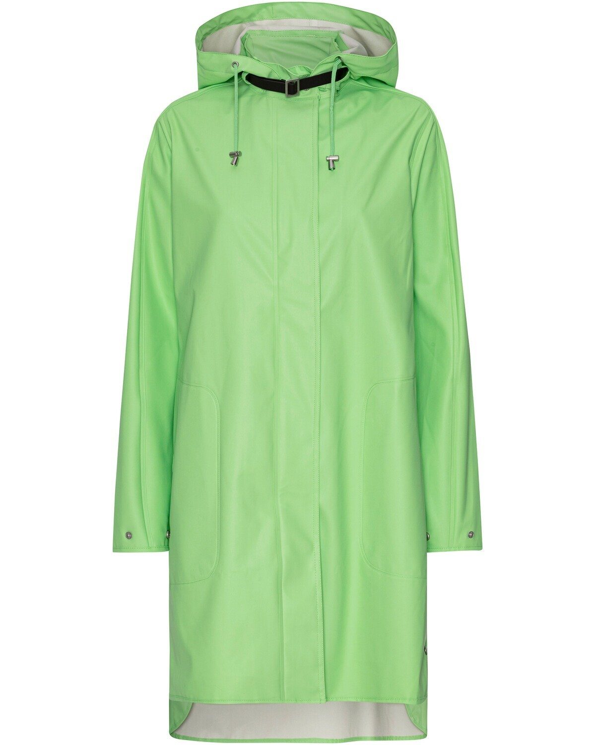 Der Damen Regenmantel in lockerer A-Linie überzeugt mit wasserfester PU-Beschichtung und doppelt verschweißten Nähten. Zudem präsentiert sich das Modell Rain71 mit kleinem Logo am linken Ärmel, abnehmbarer Kapuze mit Kordelzug und Kunstlederriegel,seitlichen Eingrifftaschen, verdecktem 2-Wege-Frontreißverschluss, leicht verlängertem Rückenteil und Seitenschlitzen mit Druckknöpfen. Oberstoff: 100% Polyester; Futter: 100% Polyester; Sonstige Materialien: 100% Beschichtung (Polyurethan)