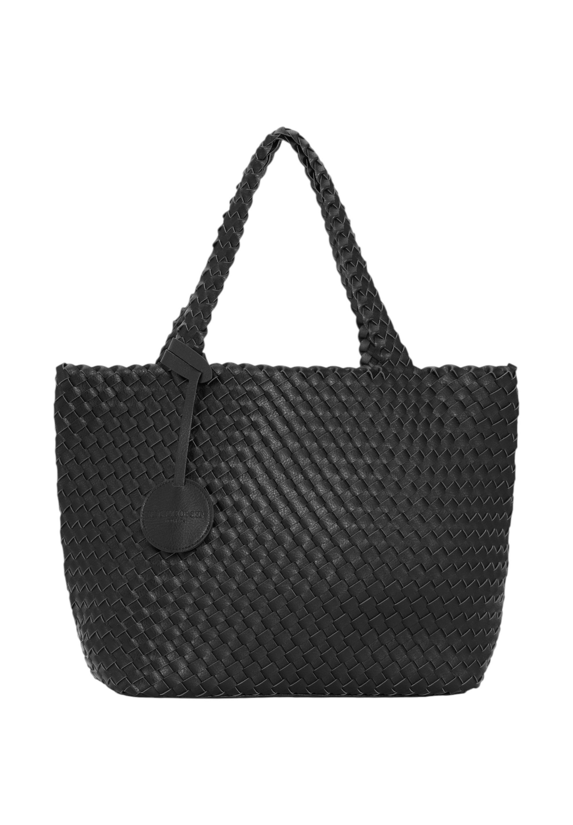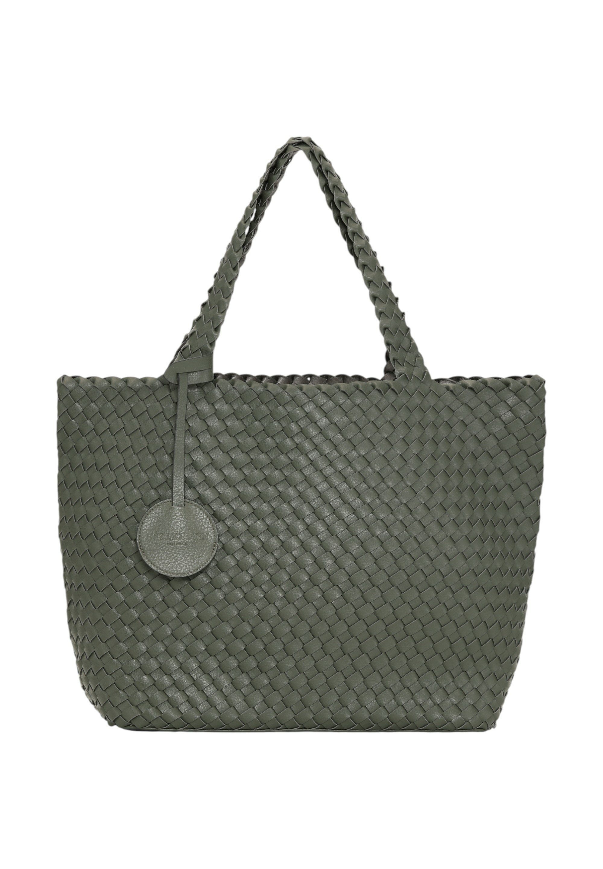 Der geflochtene wendbare Shopper ist aus geflochtenem, weichem Kunstleder gefertigt und bietet Ihnen zwei tolle Looks in einem. Das wendbare Design wird durch ein farblich passendes Logo-Etikett mit verdecktem Karabinerhaken ergänzt. So können Sie Ihr Portemonnaie oder Ihre Schlüssel ganz einfach befestigen und verhindern, dass sie am Boden Ihres Shoppers verloren gehen.