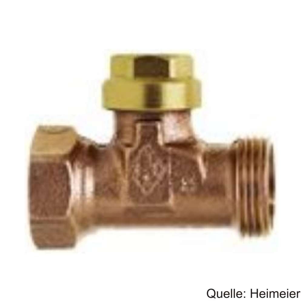 HEIMEIER Rücklaufverschraubung Gehäuse aus korrosionsbeständigem, ent- zinkungsfreiem Rotguß. Heizkreisseitiger Anschluß Außengewinde G 3/4, konusdichtend, in Verbindung mit Klemmverschraubungen für Kunststoff-, Kupfer-, Präzisionsstahl- oder Verbundrohr. Mit Absperrung und Feinstregulierung durch Doppelkegel ohne Hubbegrenzung. Keine Veränderung der Voreinstellung beim Öffnen bzw. Schlies- sen. Verschraubdeckel flachdichtend, austauschbar gegen Aufsatzthermometer zur Erfassung der Rücklauftemperatur. Zul. Betriebstemperatur TB 120 Grd. C. Zul. Betriebsüberdruck PB 10 bar.   Fabrikat: IMI Heimeier Ausführung: Rotguß Durchgangsform Verteilerseitiger Anschluß: Innengewinde Rp 1/2   Art.-Nr. 0402-02.000HM040202000