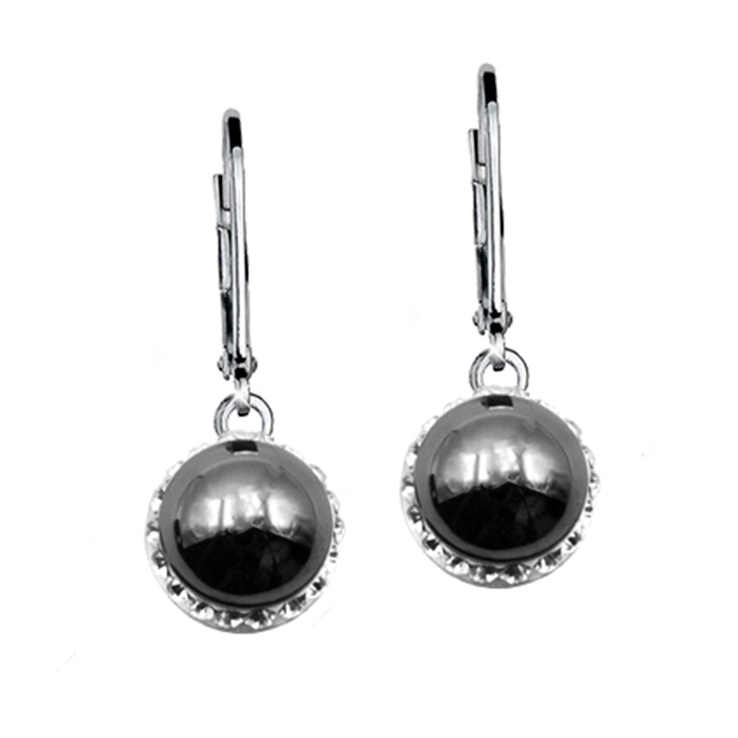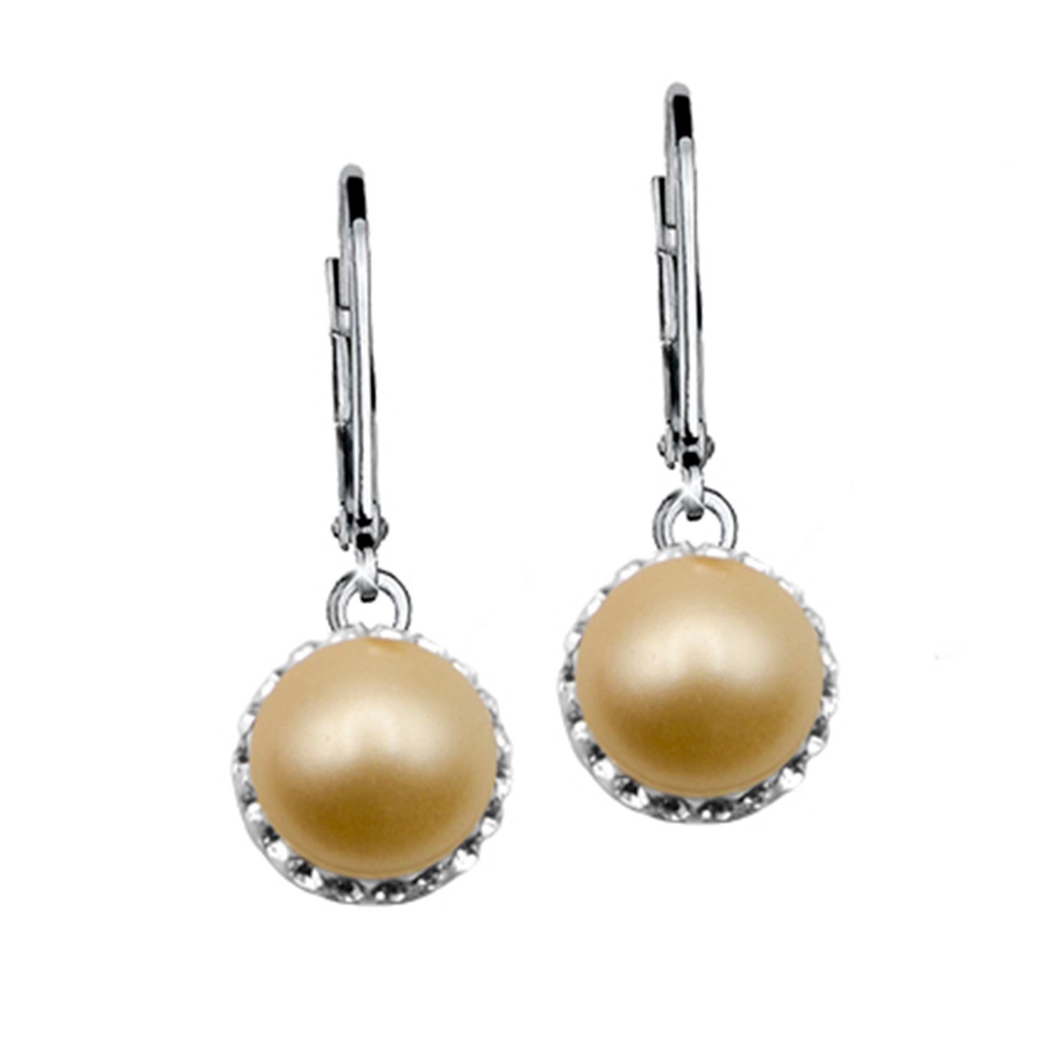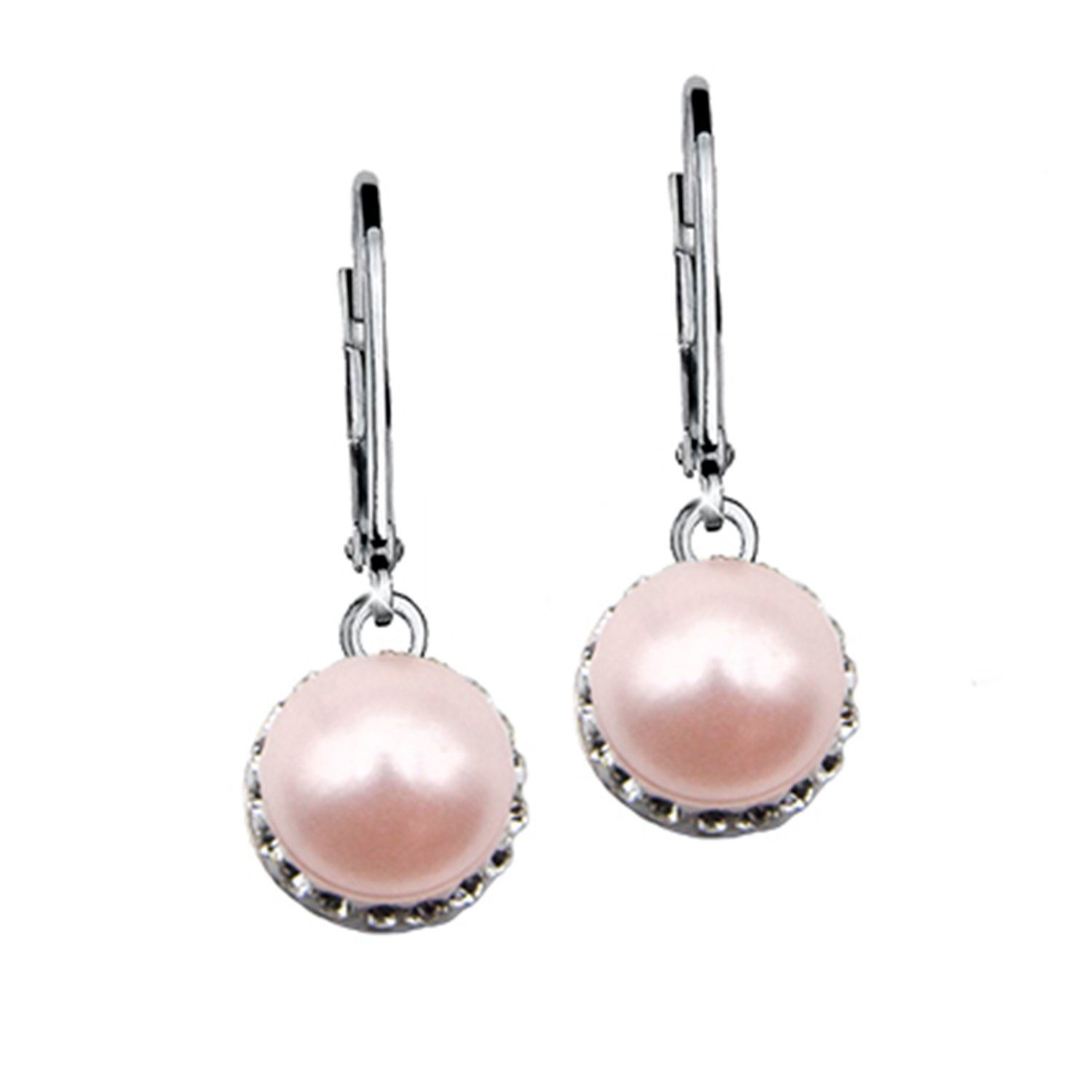 Klassische Ohrhänger mit Swarovski-Perle modern in Szene gesetzt durch viele kleine Kristallsteine. aus 925 Sterlingsilber rhodiniert ca.8 mm Durchmesser